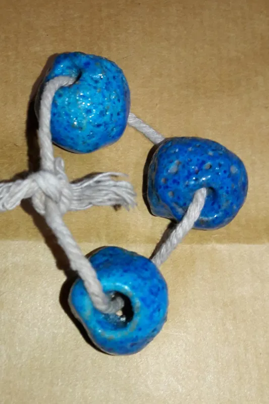 سه عدد مهره سفالی با روکش لعابی فیروزه ای سالم و بدون ایراد سنگ طبیعی نیس دست ساز بوده ولی کهنه ومال زمان پهلوی