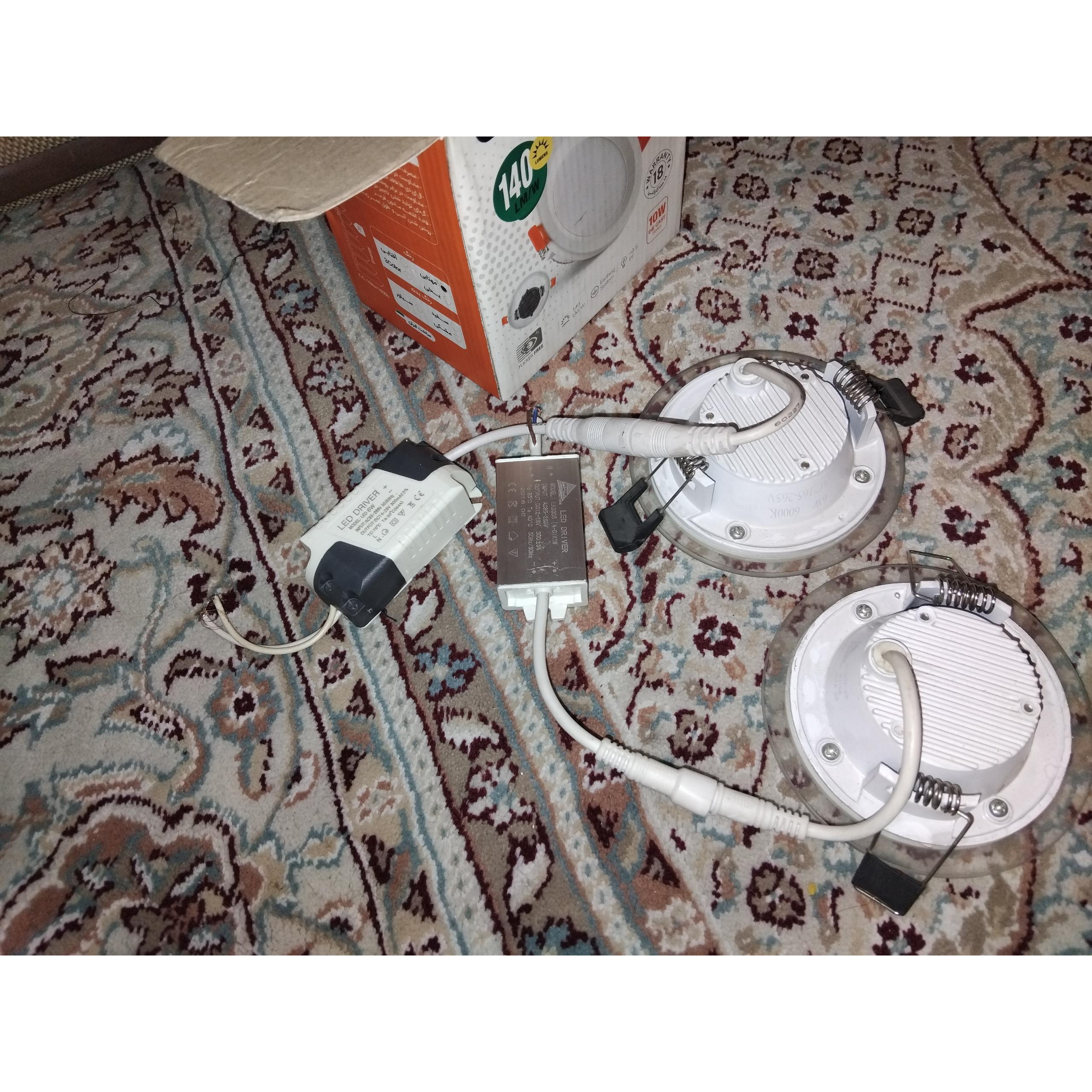 دو عدد چراغ SMD. شش وات توکار به همراه ترانس متعلقاتش از سالم بودن ترانس مطمعن نیستم با عنوان معیوب میفروشم .کالا چراغ ها نو هستش