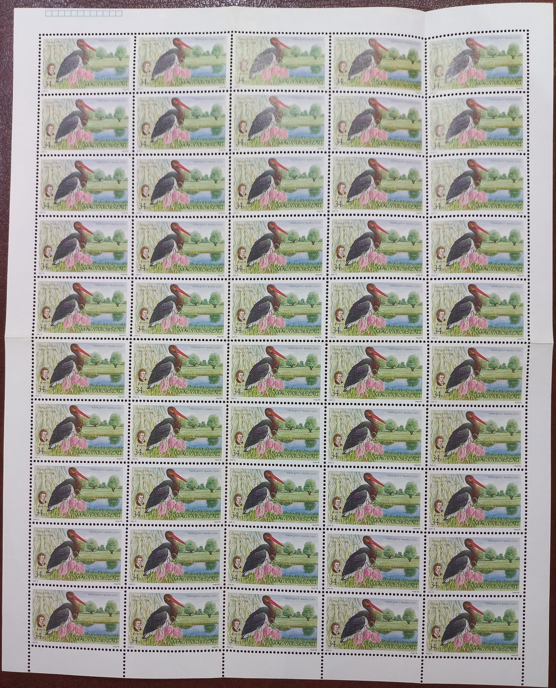 شیت ورق 50 تمبر یادگاری پرندگان مجارستان سال 2000
