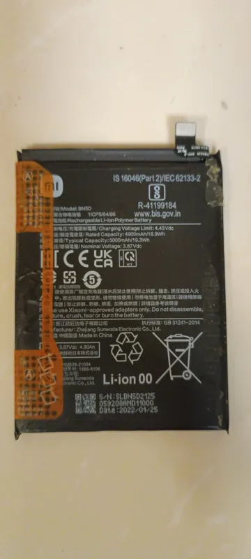 باتری از گوشی تقریبا نو که ال سی دی شکسته بوده باز شده..تست شده سالم