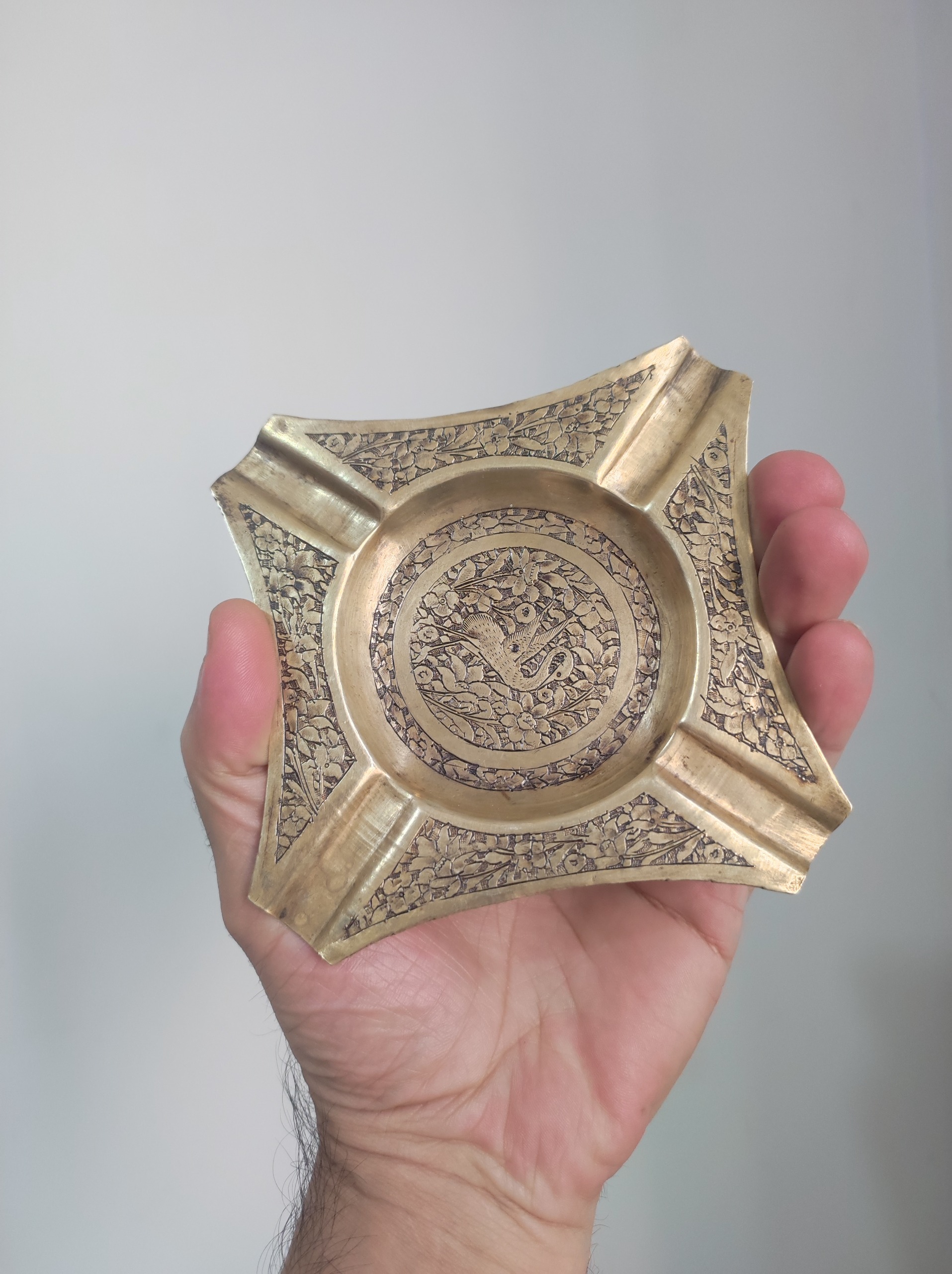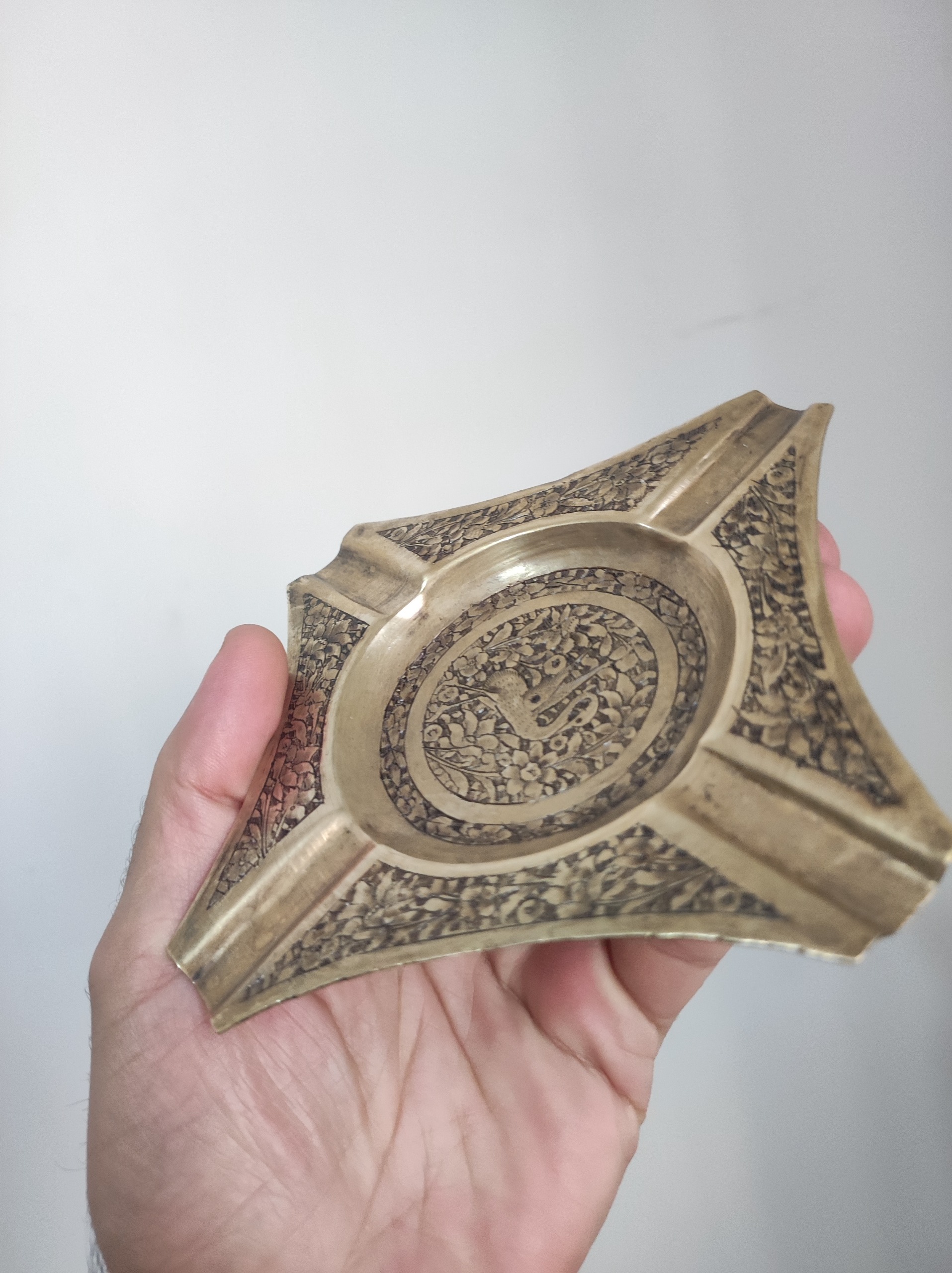 زیر سیگاری برنجی تمام قلمزنی بینظیر پهلوی