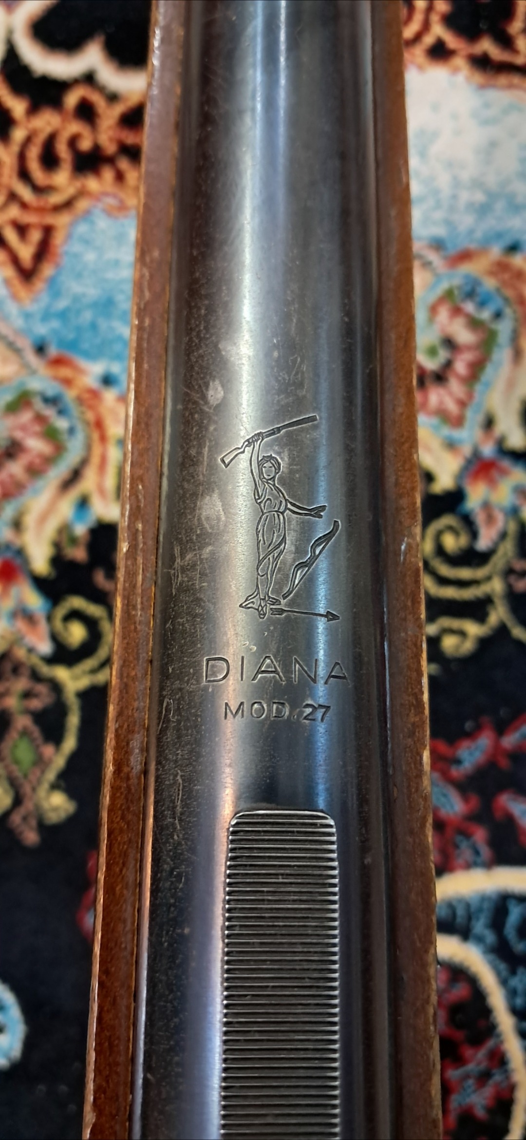 تفنگ دیانا27 کالیبر4/5 شکاف درجه و مگسک فابریک ساخت آلمان غربی ارم حک ماشه سه ساچمه قنداق سالم سال تولید1984 قدرت و دقت عالی کلکسیونی و قابل استفاده
