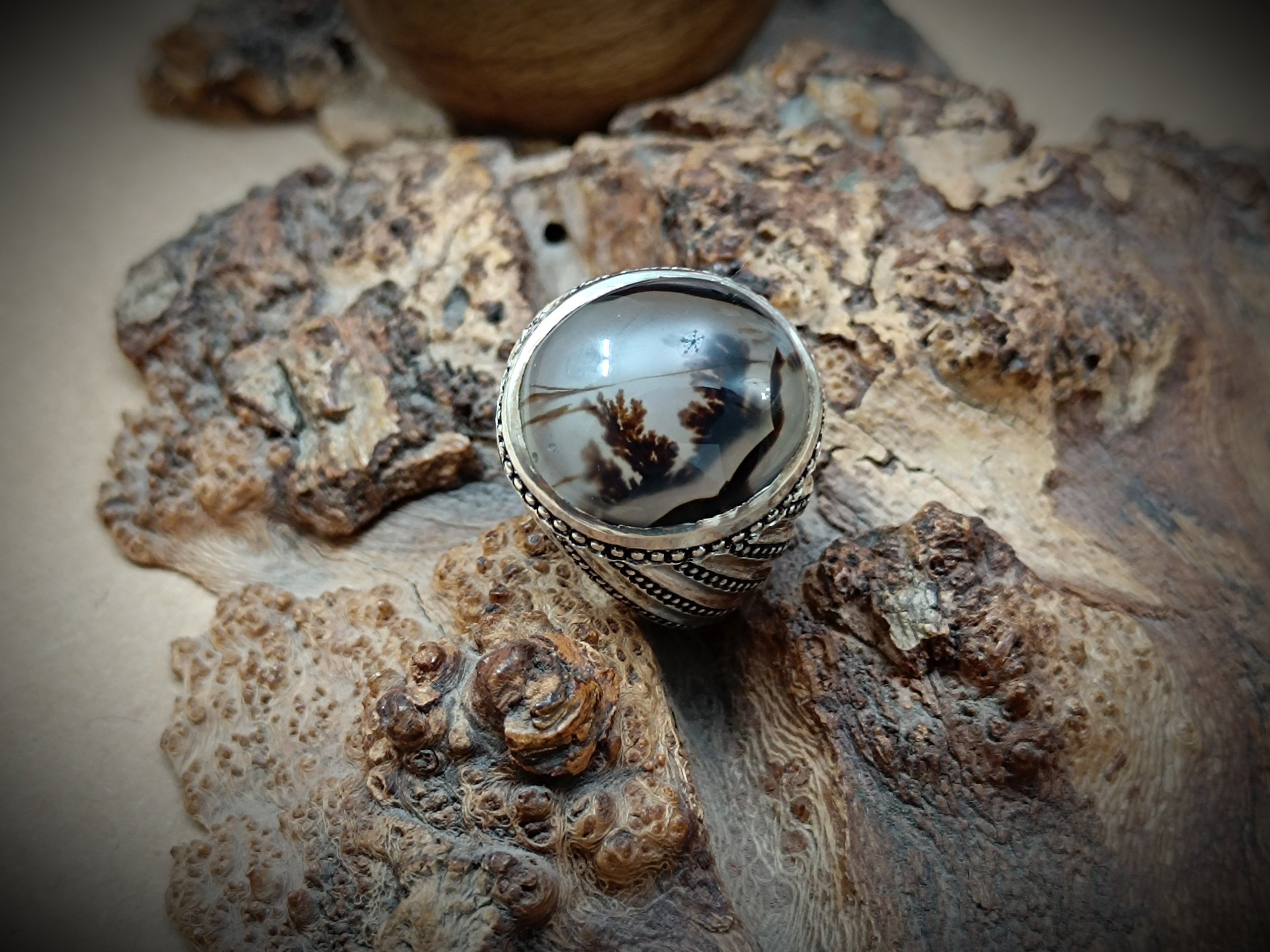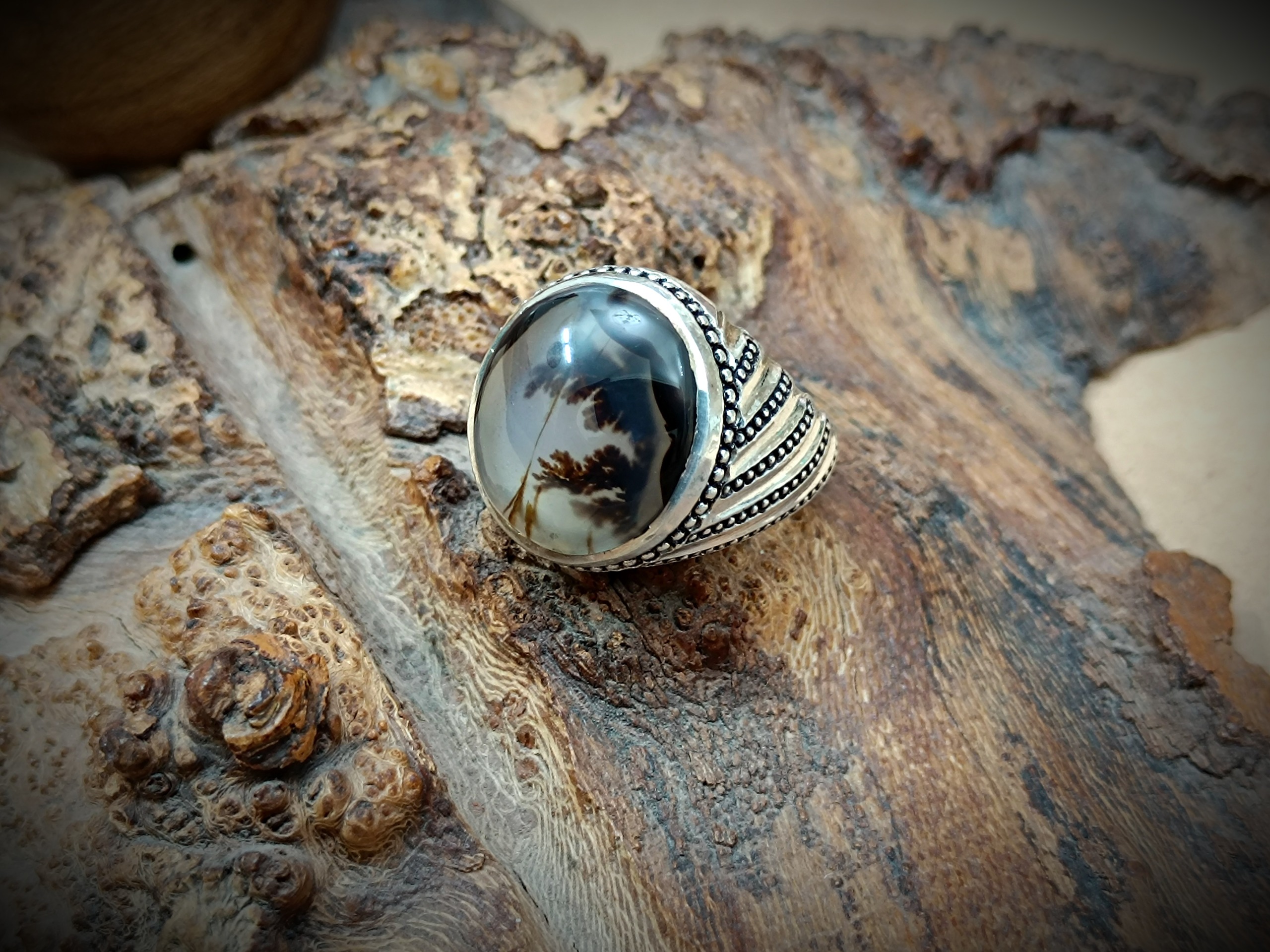 انگشتر نقره دستساز مردانه با نگین عقیق شجر قائن اصیل و طبیعی
