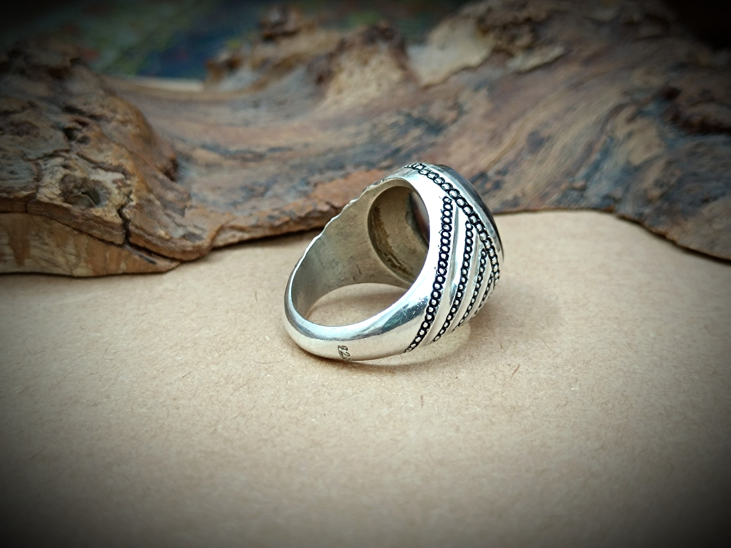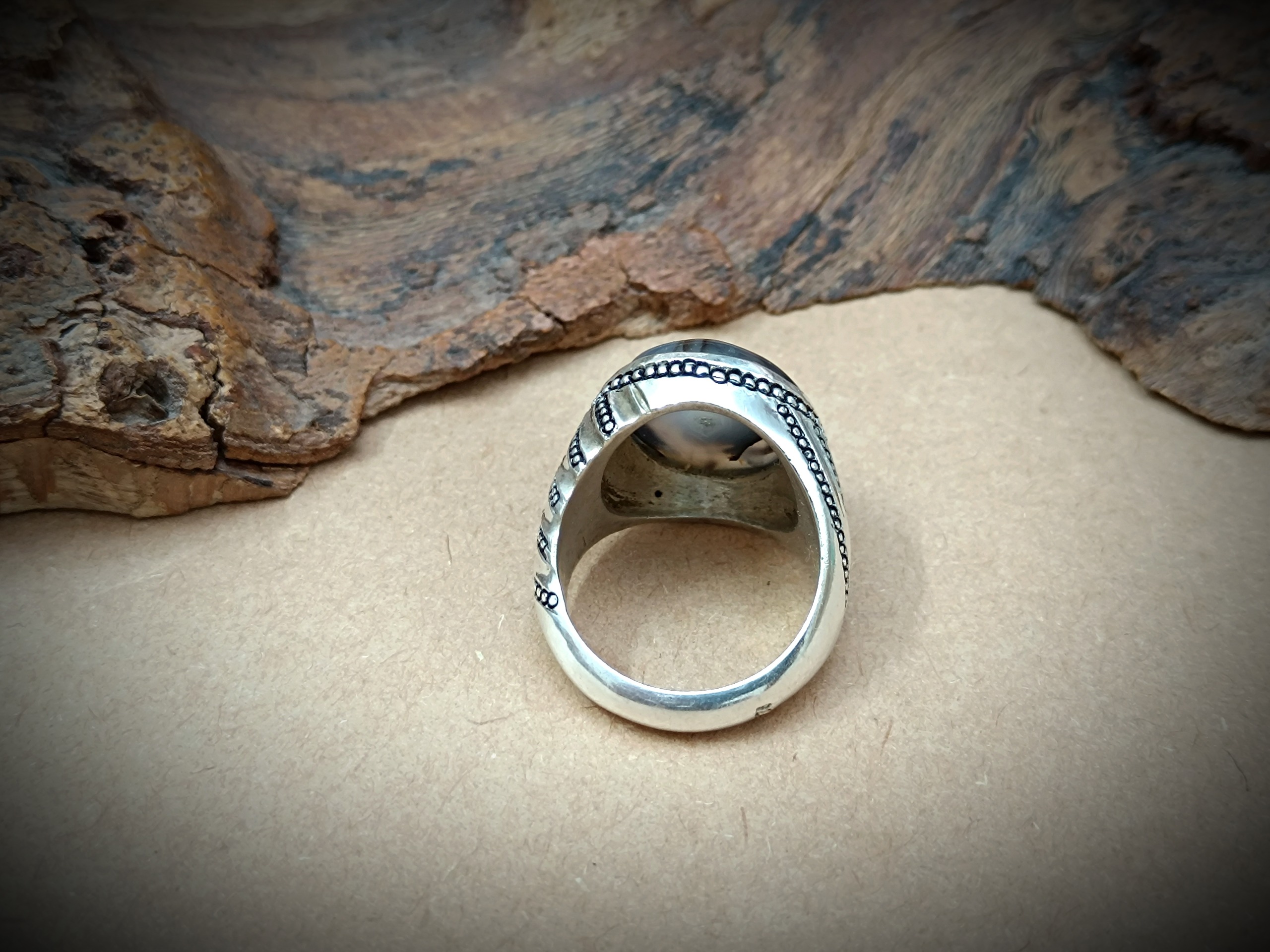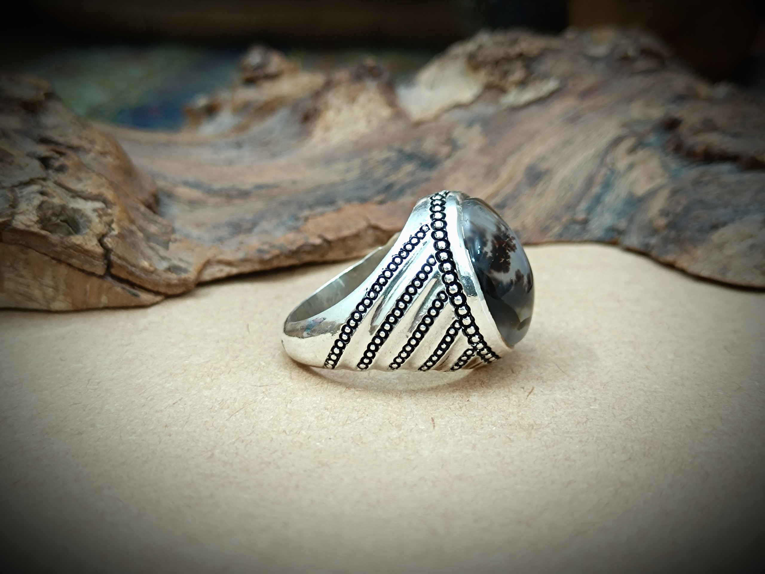 انگشتر نقره دستساز مردانه با نگین عقیق شجر قائن