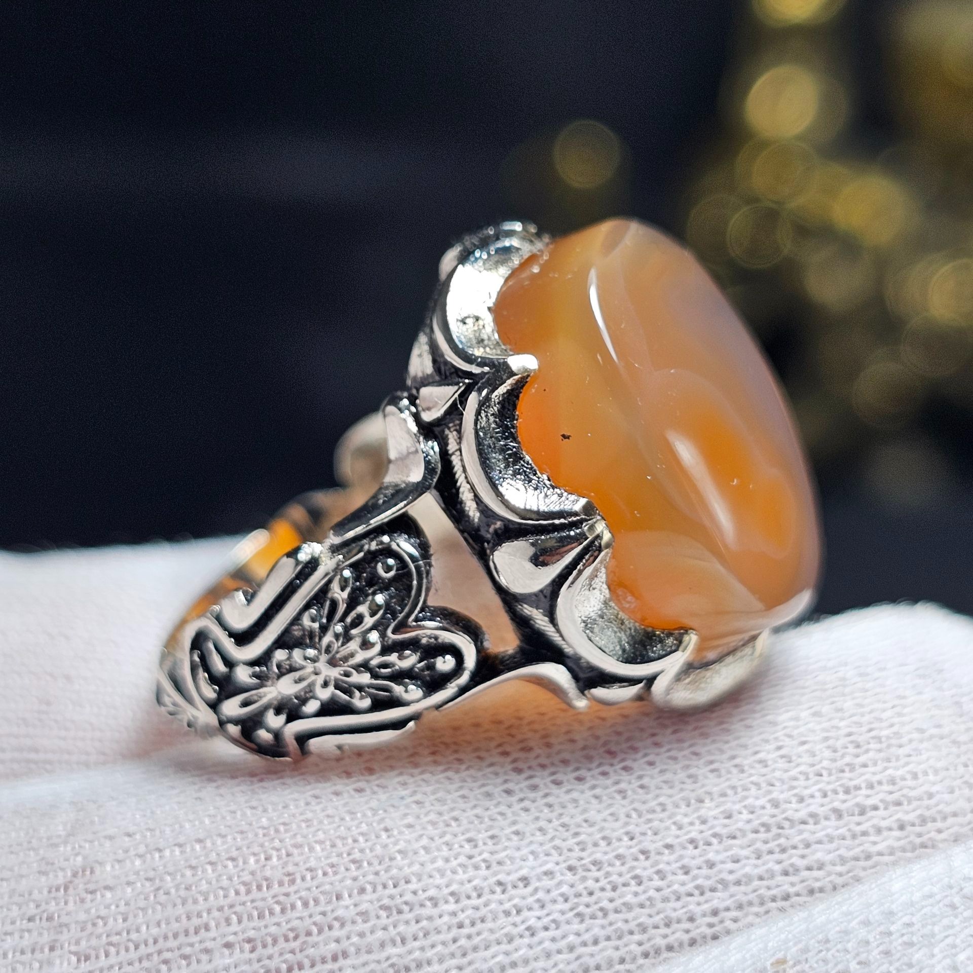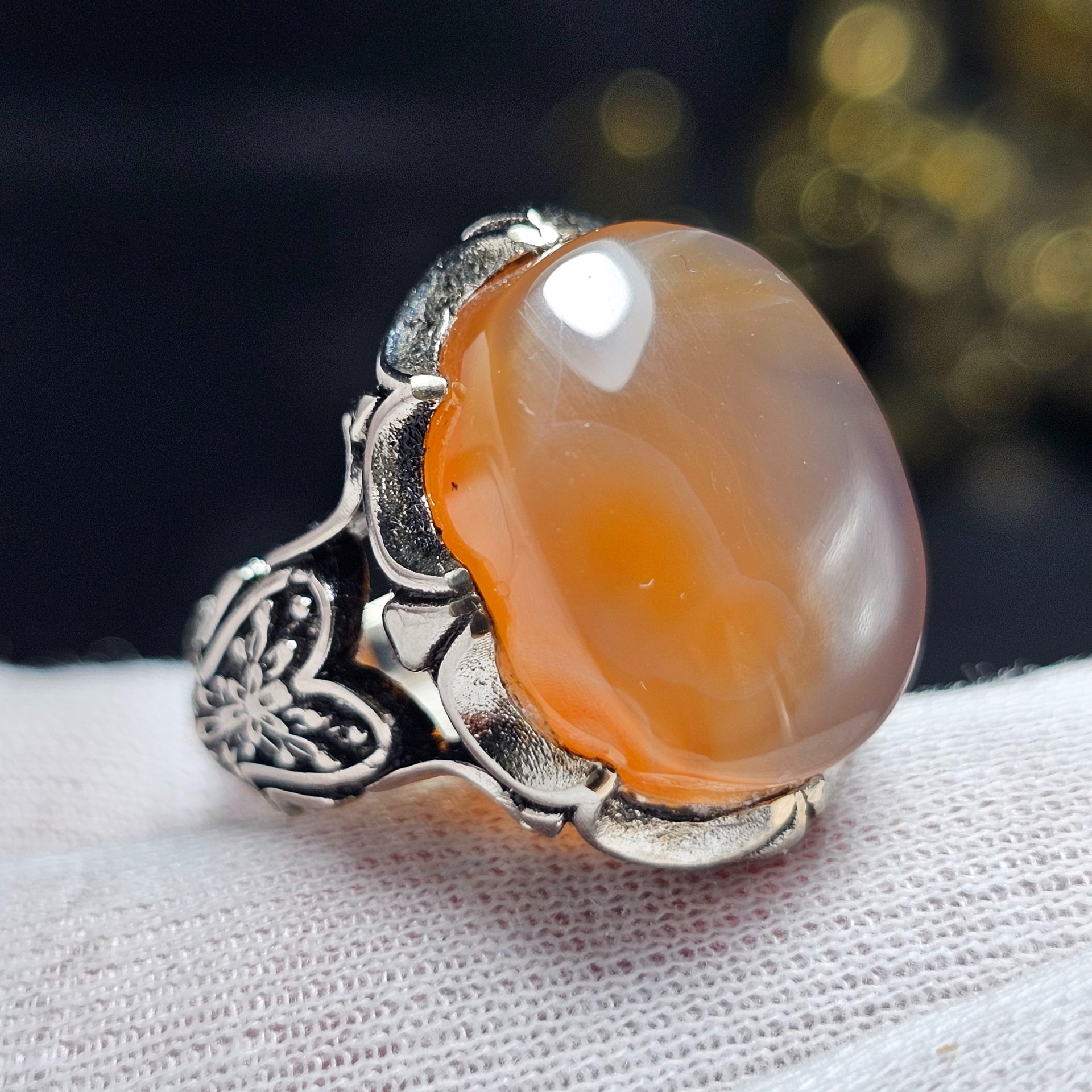 انگشتر نقره  روس با سنگ طبیعی عقیق معدنی اصل یمن