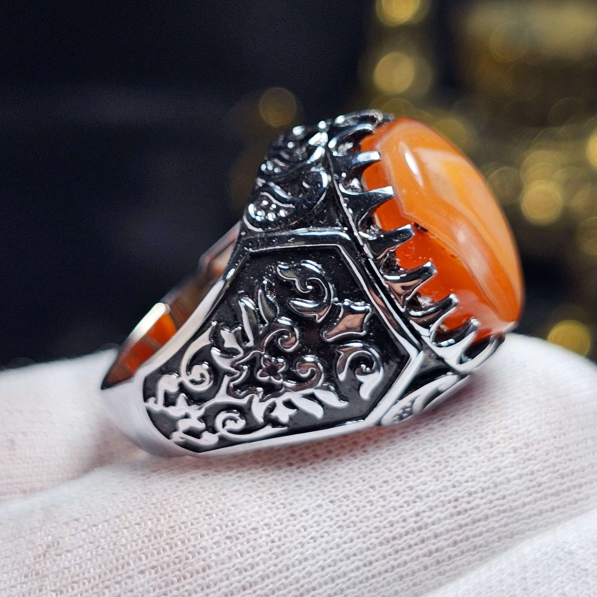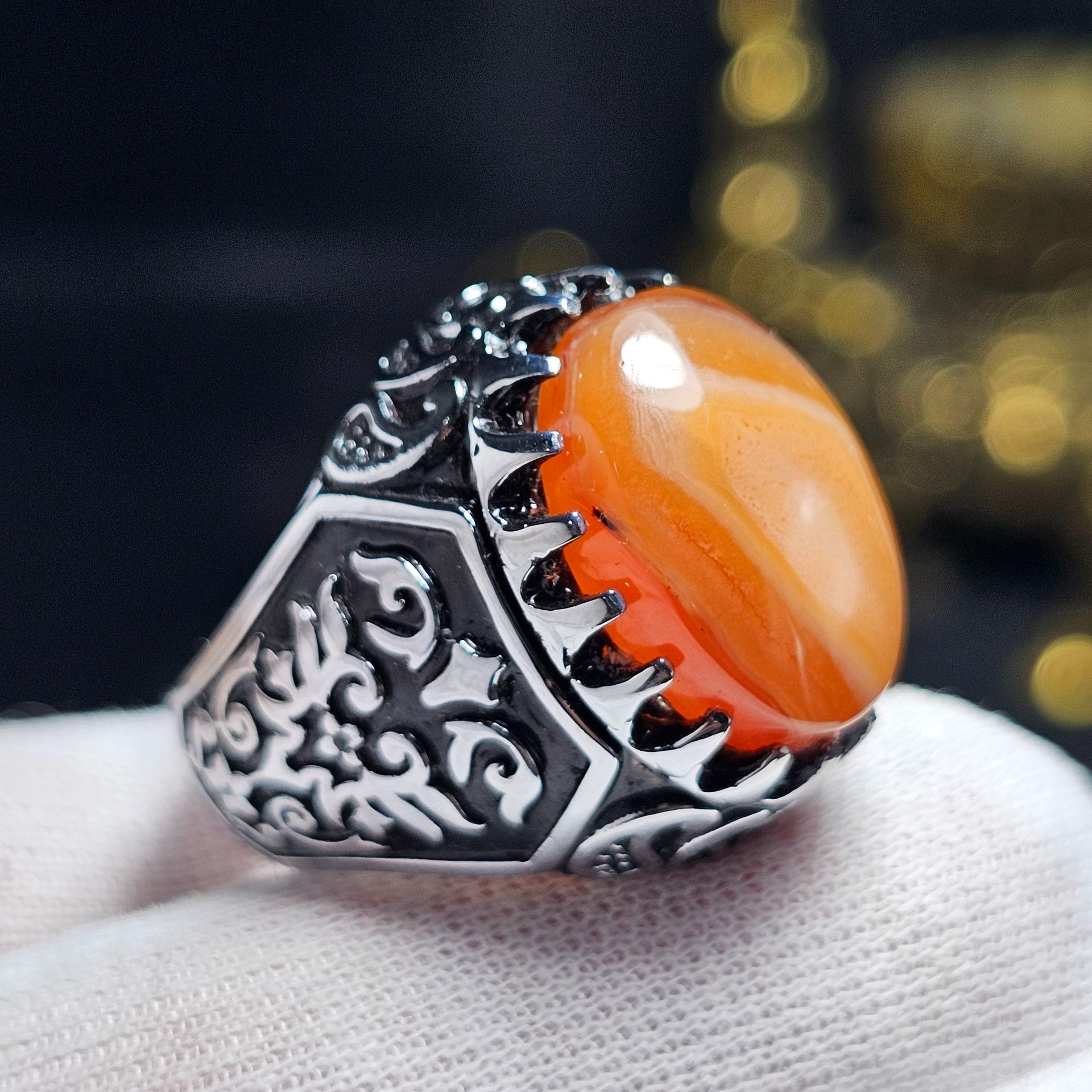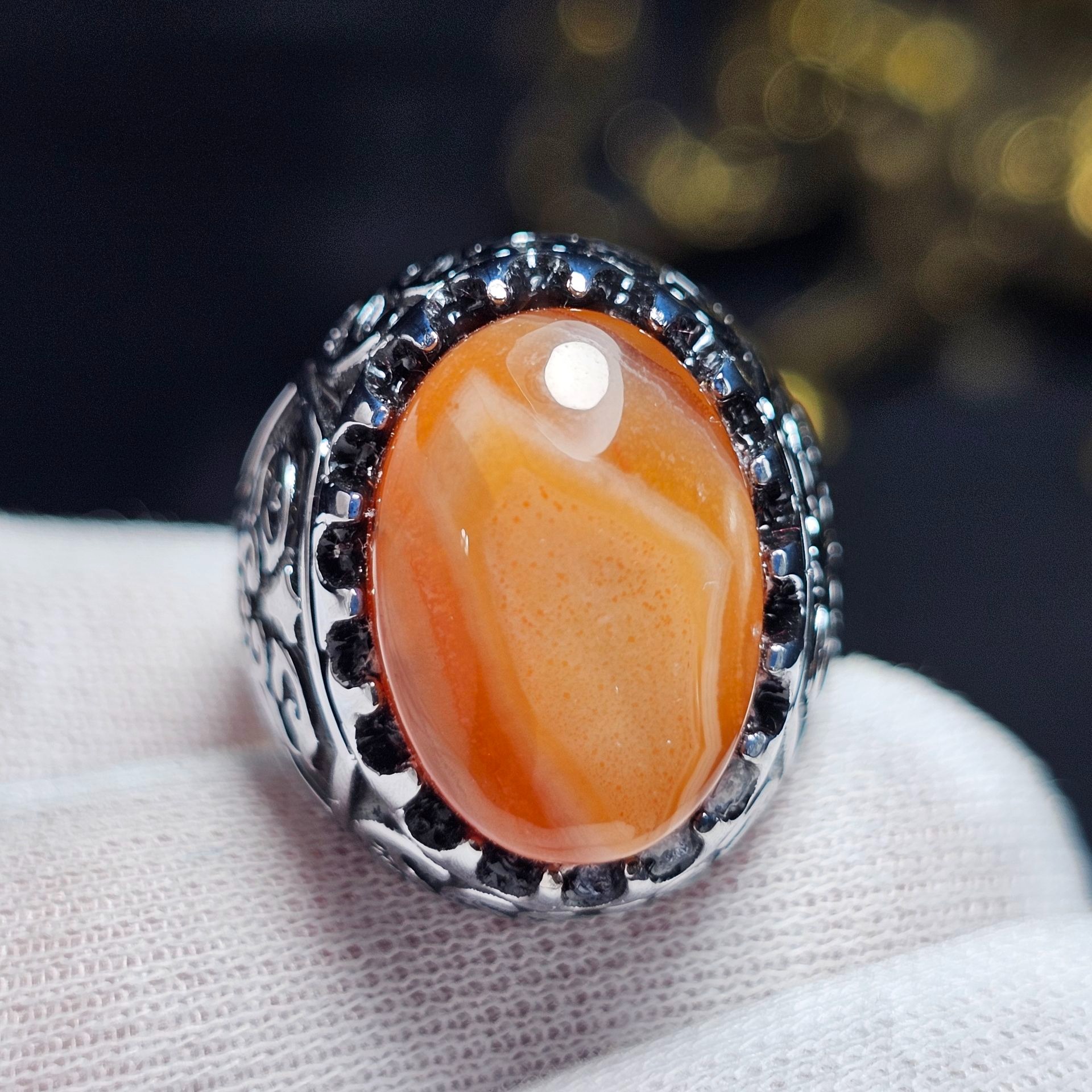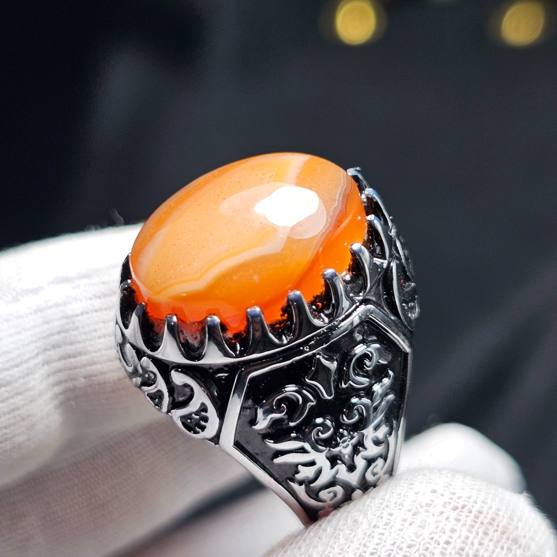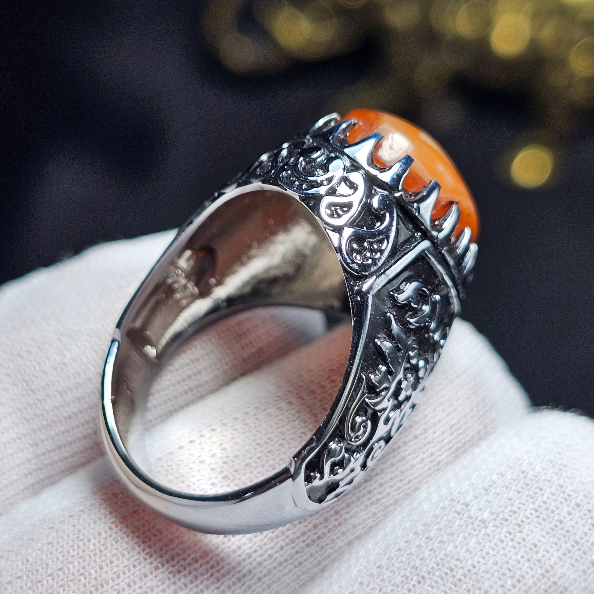 انگشتر نقره روس با سنگ طبیعی عقیق معدنی اصل یمن