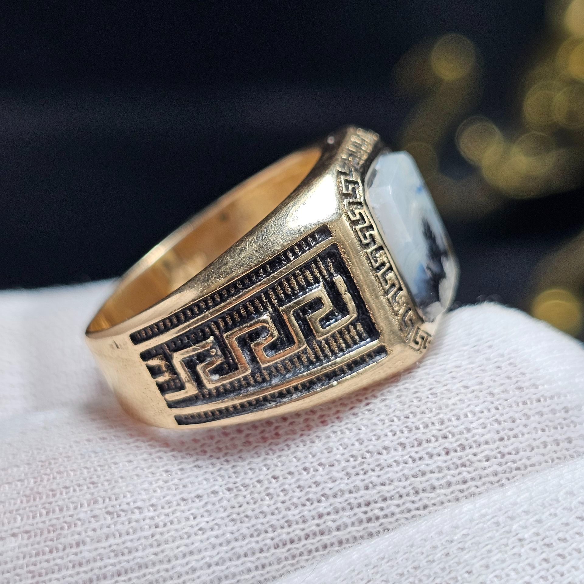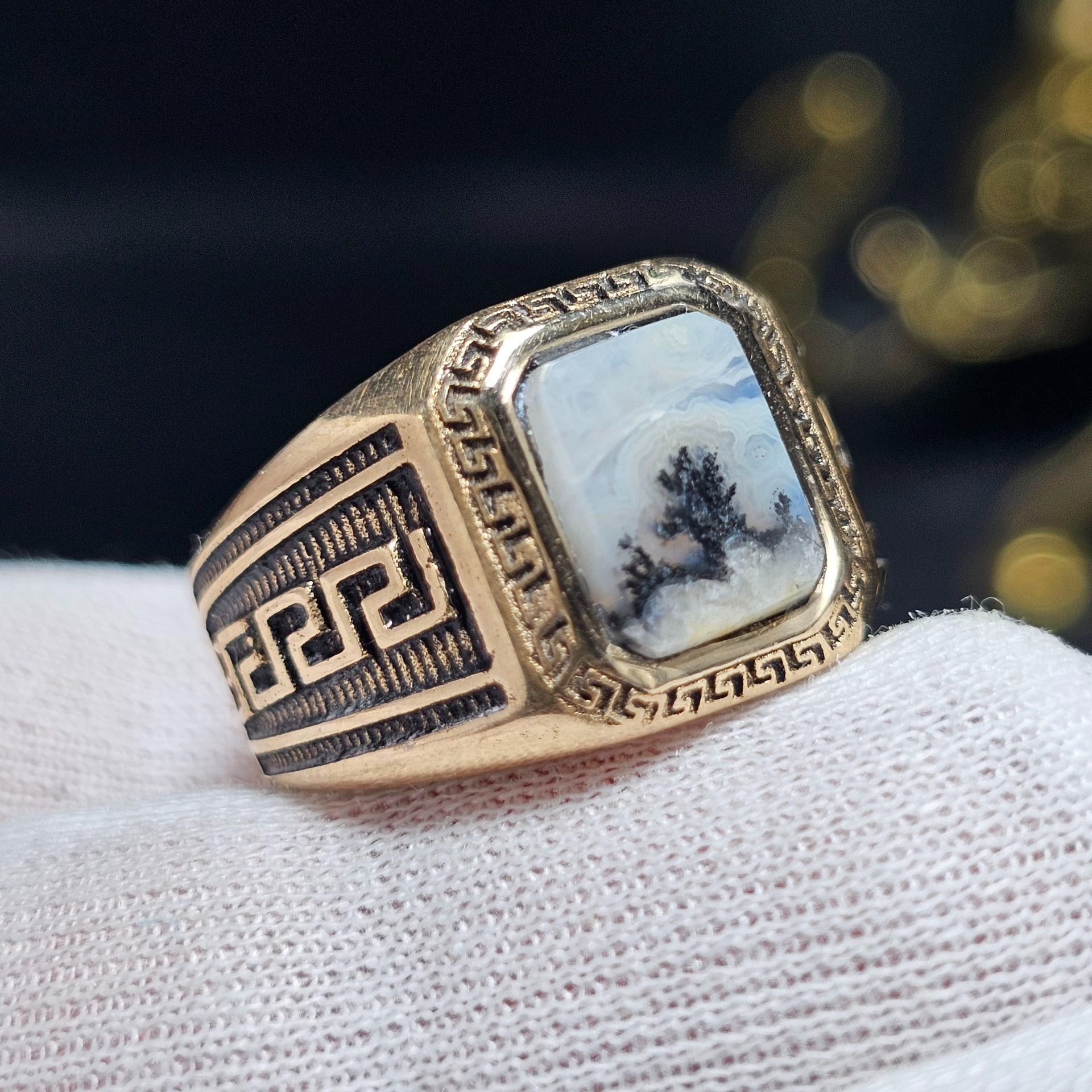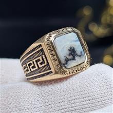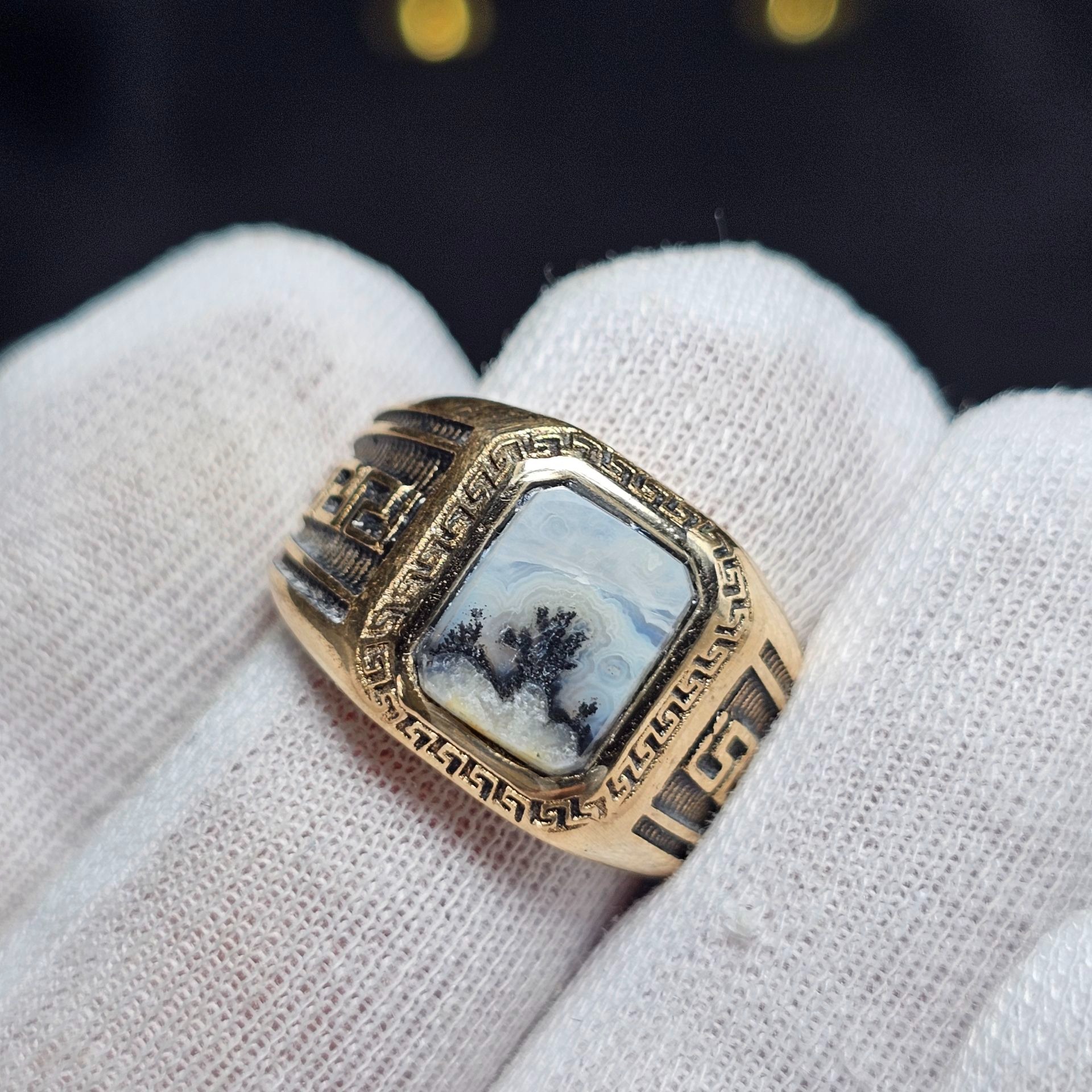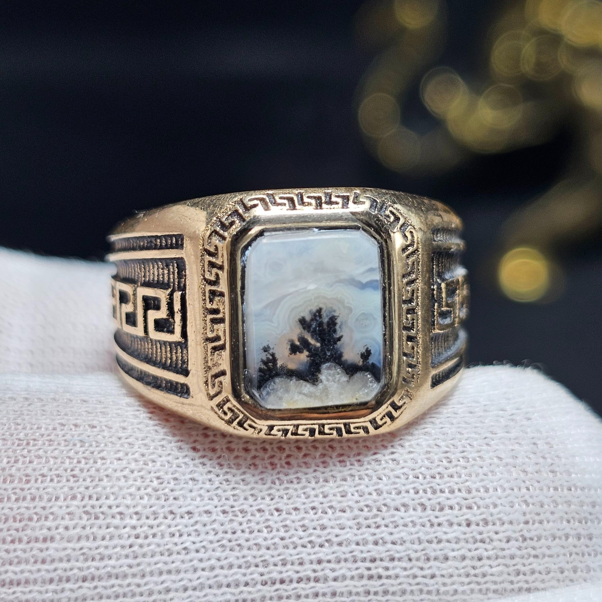 انگشتر طلا روس با سنگ طبیعی عقیق شجر معدنی خراسان