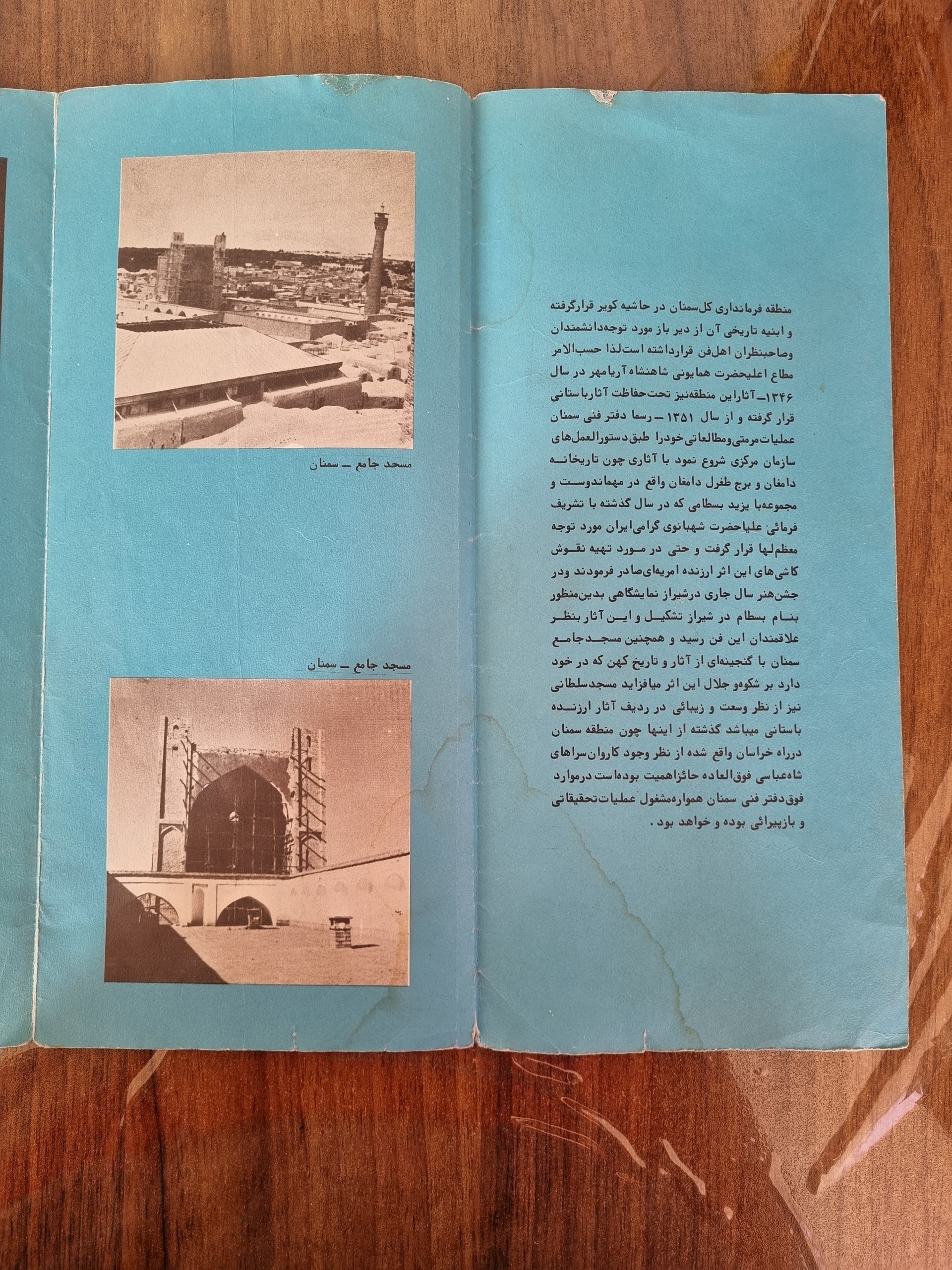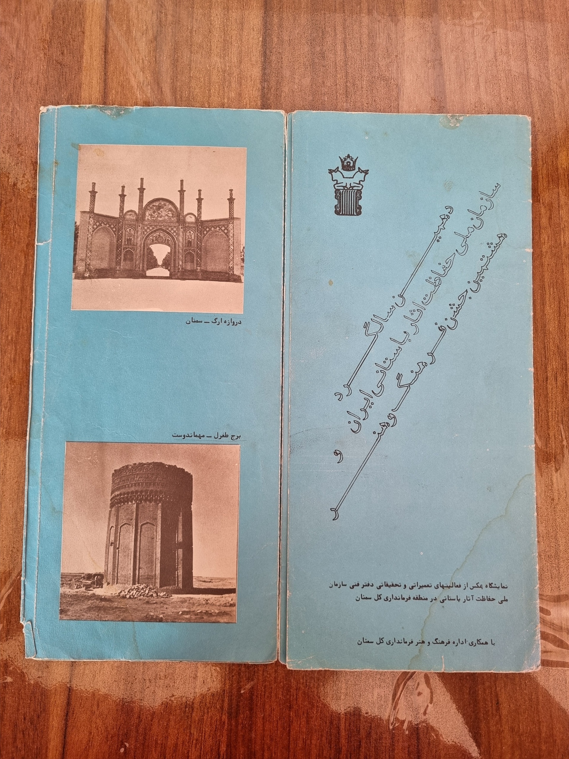 بروشور دهمین سالگرد سازمان ملی حفاظت آثار باستانی ایران و هشتمین جشن فرهنگ و هنر، سمنان.