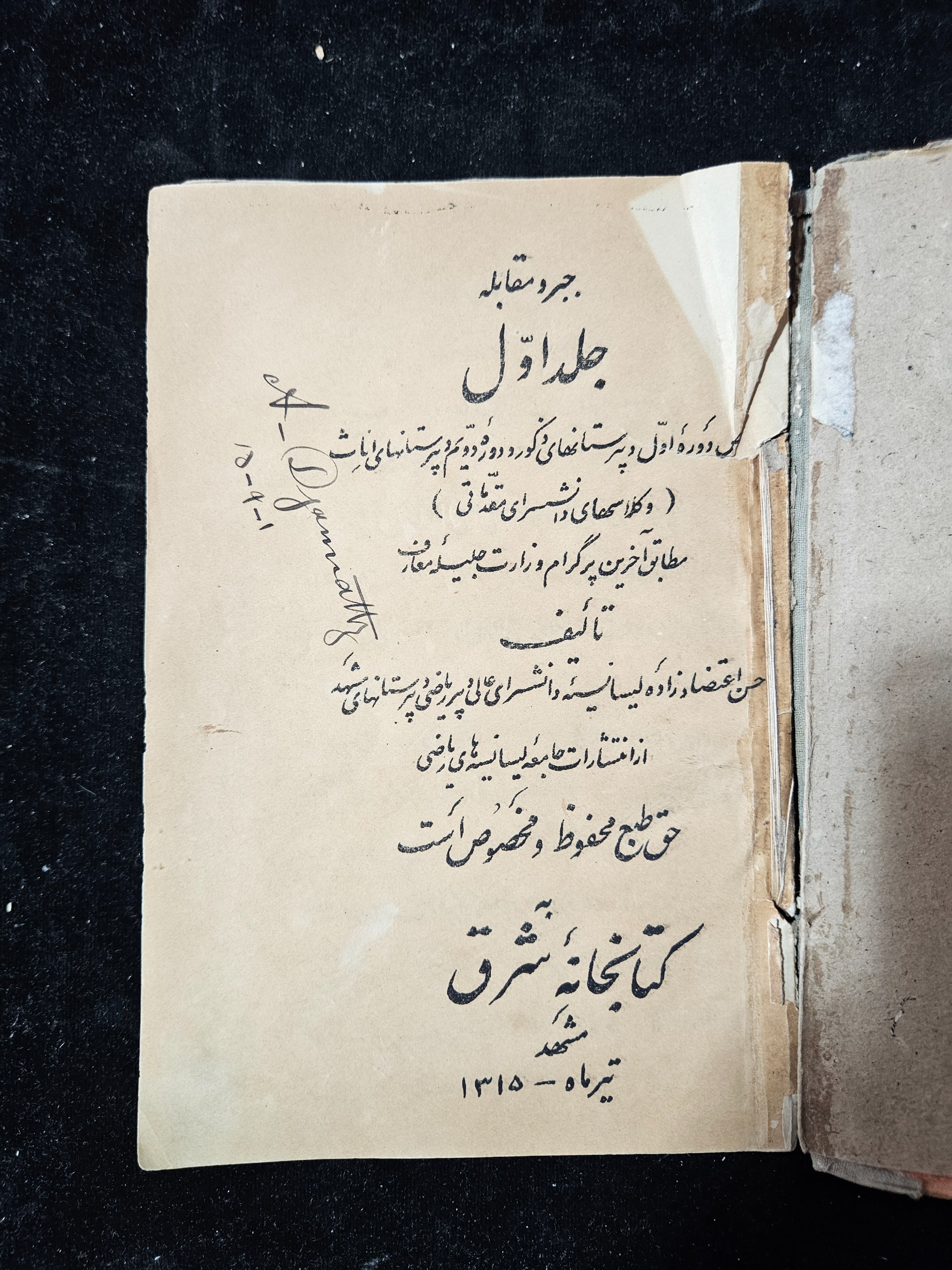 جبر و مقابله 258 صفحهچاپ 1315 دوره اول دبیرستان