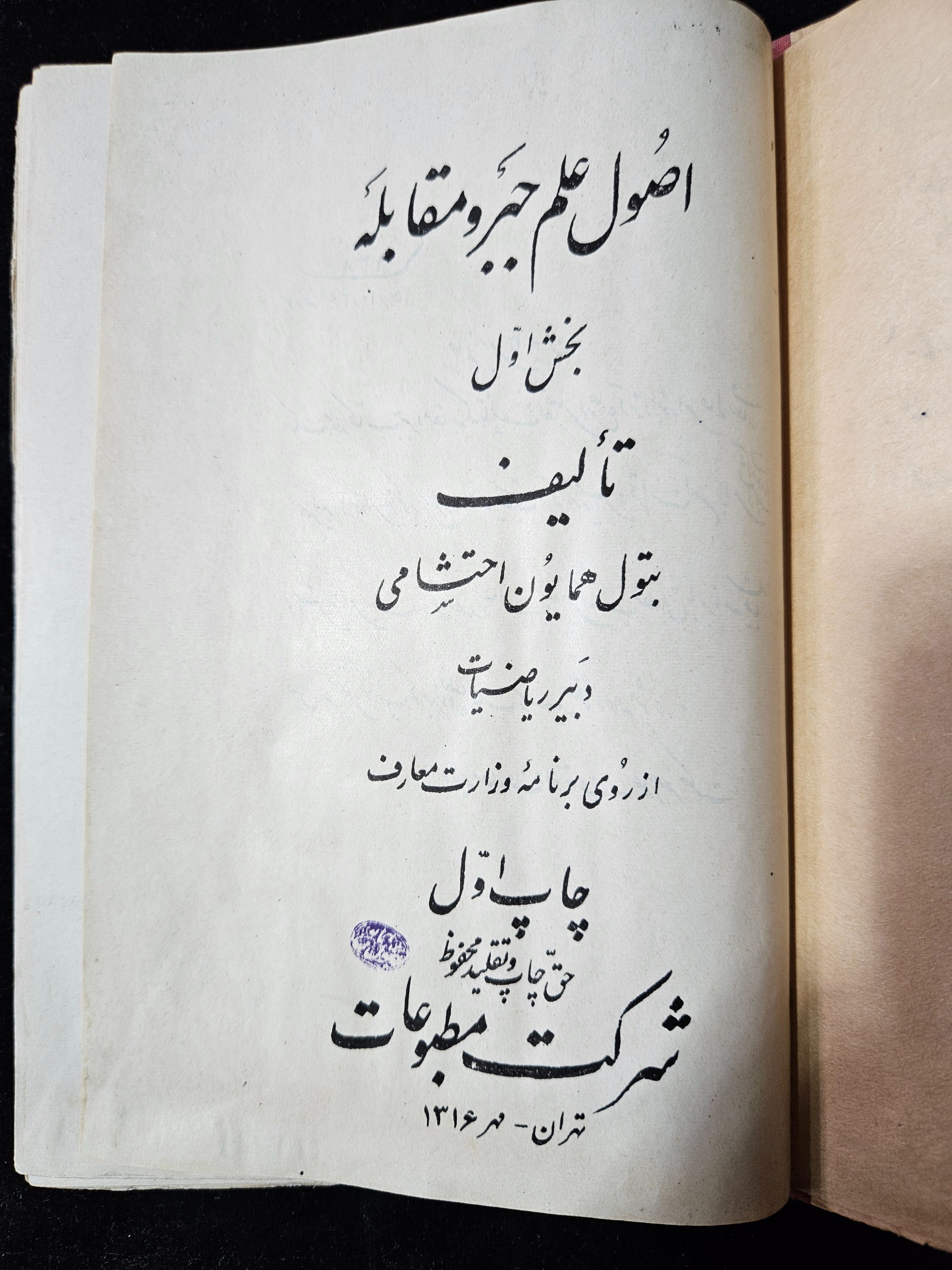 اصول علم و جیر و مقابله چاپ 1316 بتول همایون
