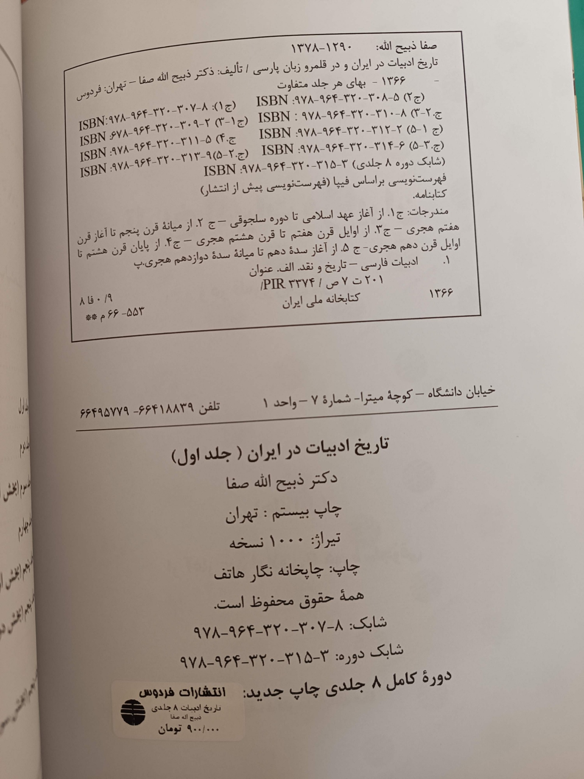 تاریخ ادبیات در ایران ذبیح الله صفا 8 جلدی