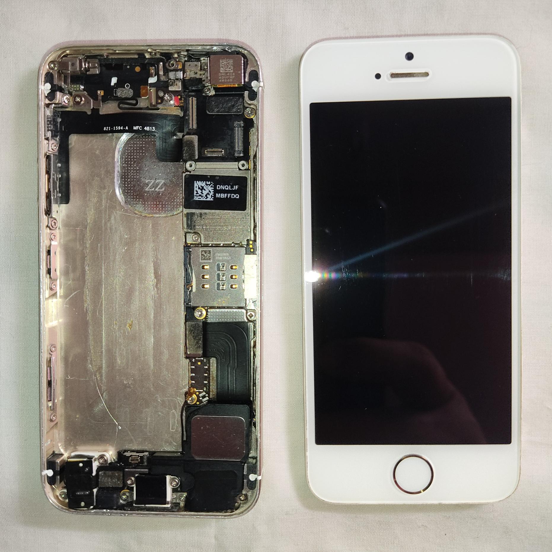 گوشی اپل ایفون 5 اس خاموش (برد این گوشی خاموش میباشد) برای استفاده از قطعات فروخته میشود.