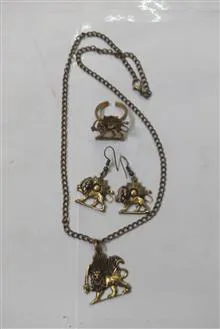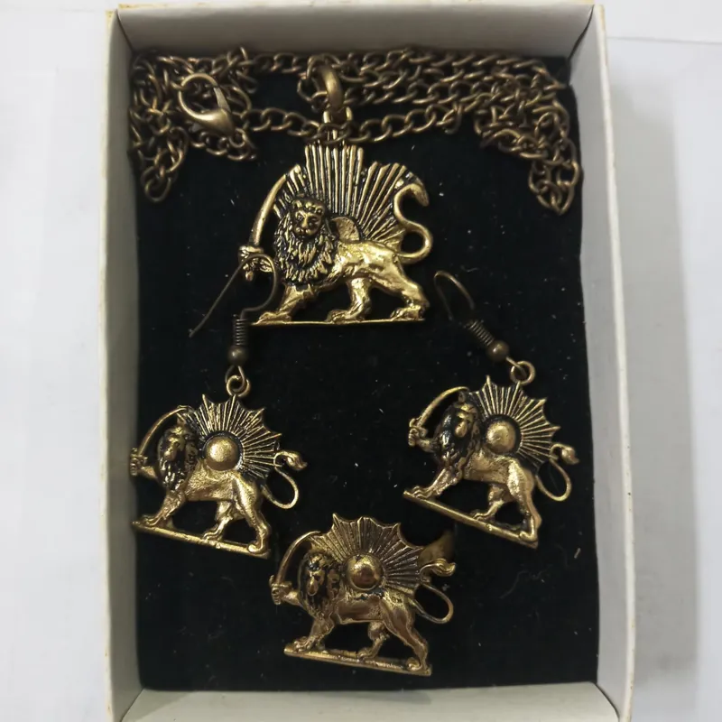 ست گردنبند.گوشواره.انگشتر شیر و خورشید برنجی کاملا نو