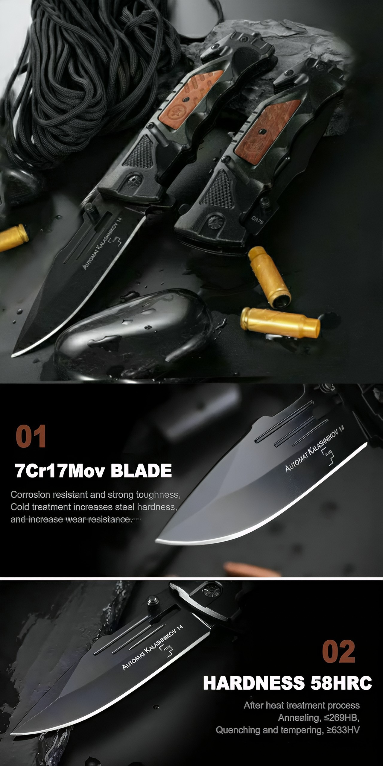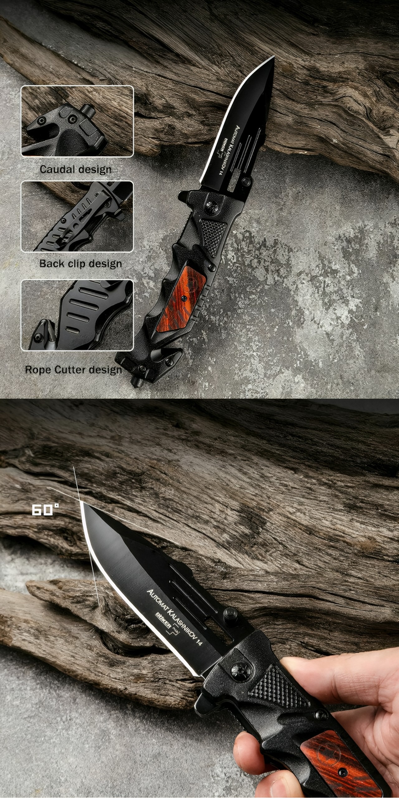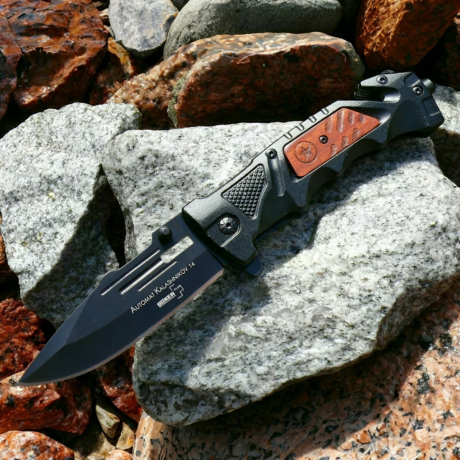 چاقو نیمه اتوماتیک بوکر مدل DA75 مناسب برای شکار، کوهنوردی، کمپینگ، طبیعت گردی و ...