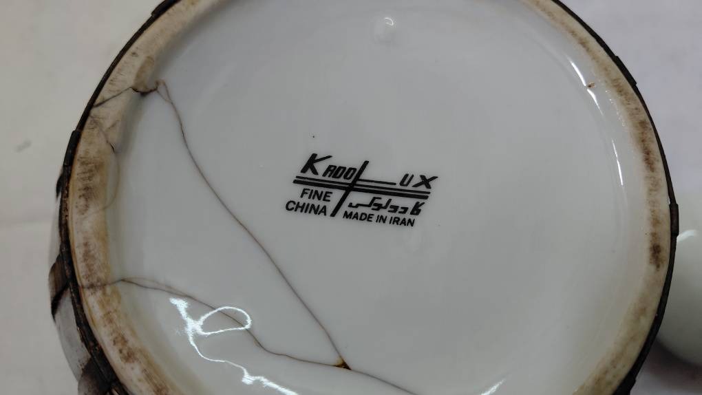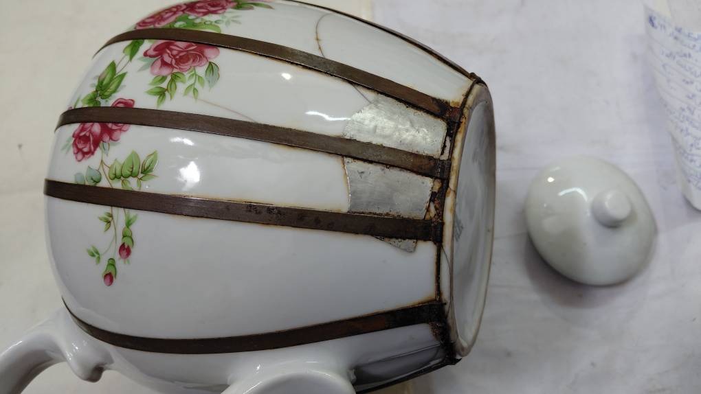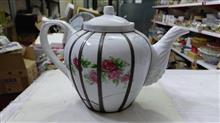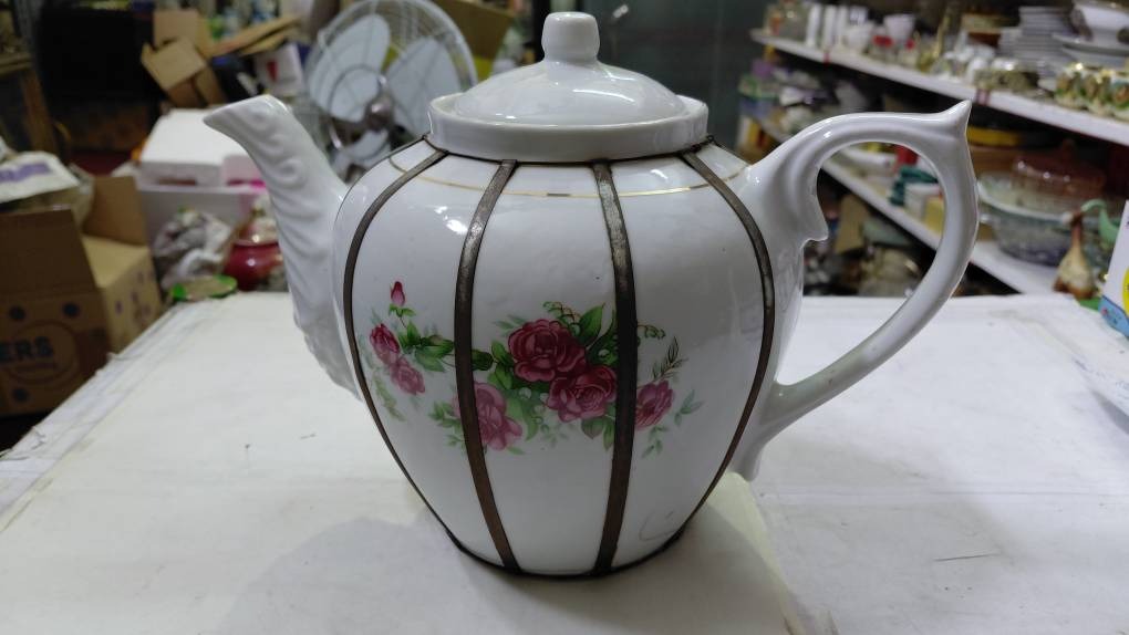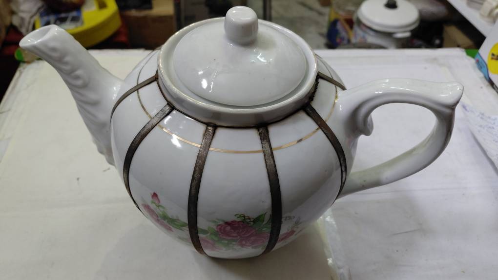 قوری بند زده گل سرخی ایرانی به طول 29 سانت از دسته تا لوله و ارتفاع 21 سانت.