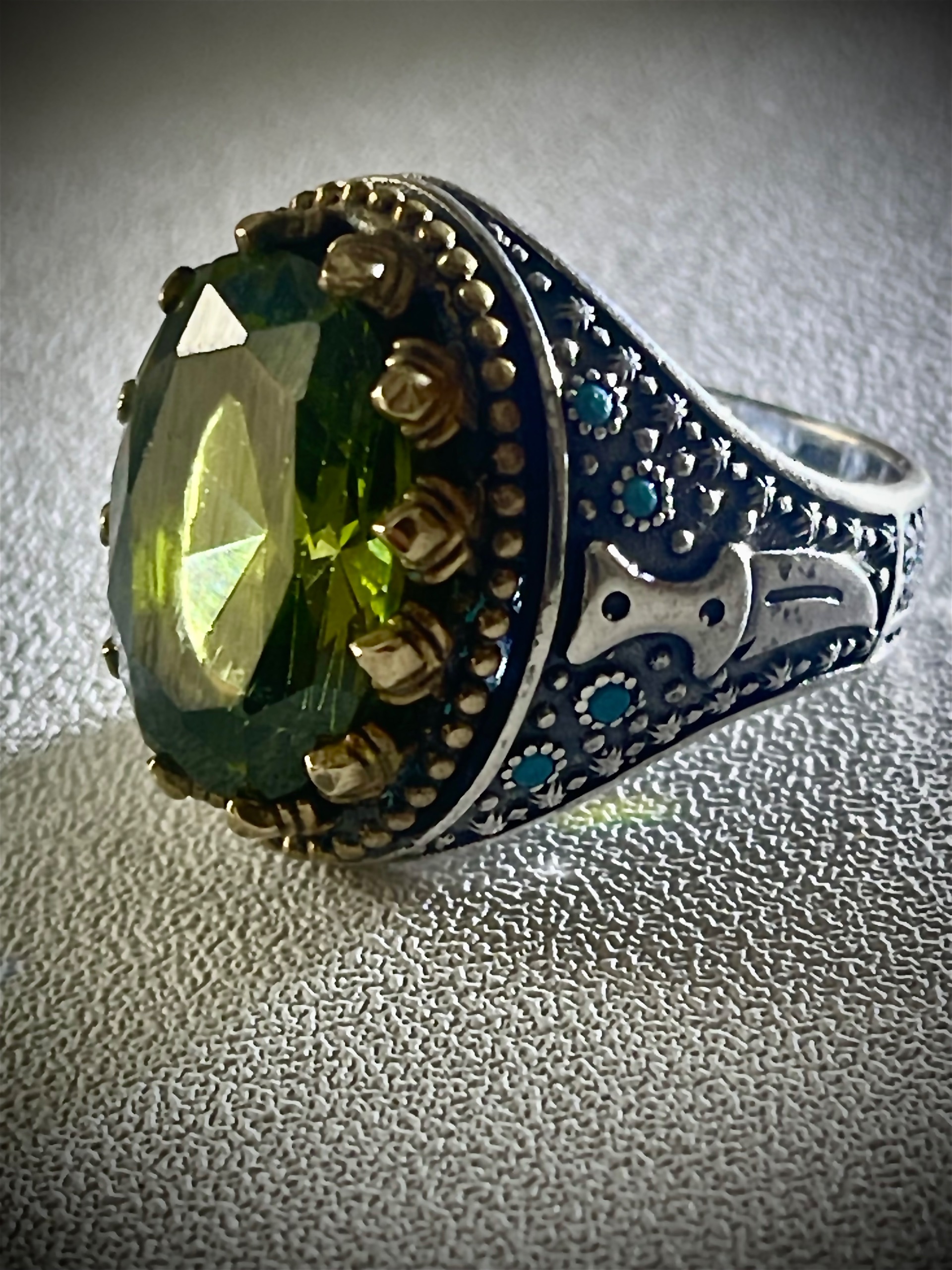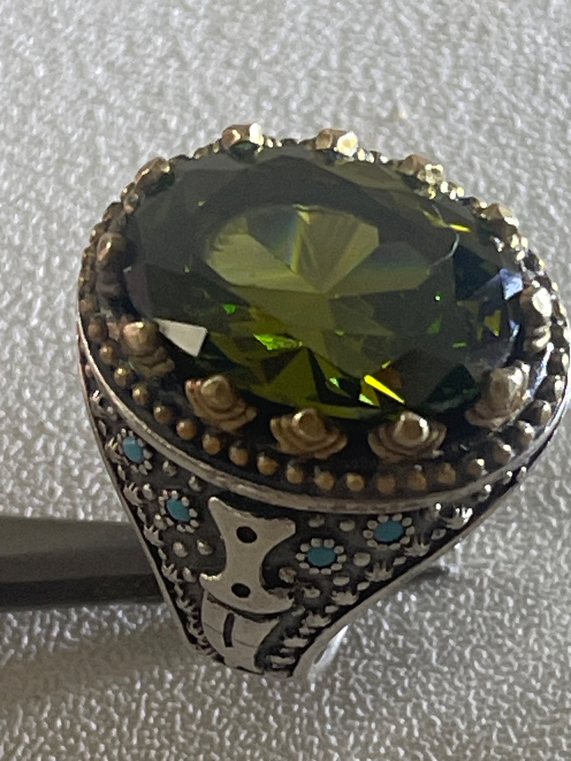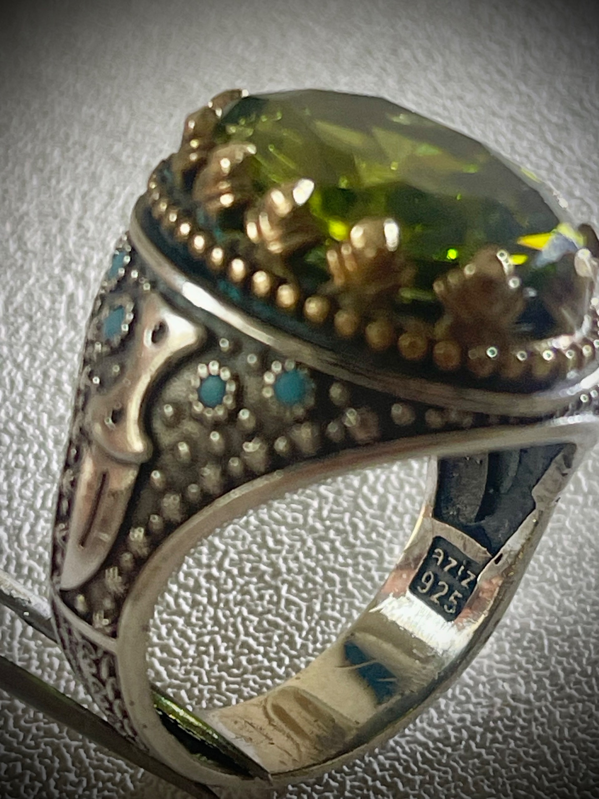 انگشتر زبرجد کلکسیونی جواهری با 18 گرم نقره 925