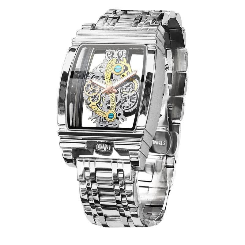 با ساعت مچی مردانه بین باند BIN BOND استیل با طراحی پشت و رو نمایان چرخ دنده، ظاهری بینظیر و جذاب داشته باشید. این ساعت با رنگ بند و صفحه شفاف شیشه و چرخ دنده متحرک، جلوهای منحصربهفرد به استایل شما میبخشد. به عنوان یک محصول