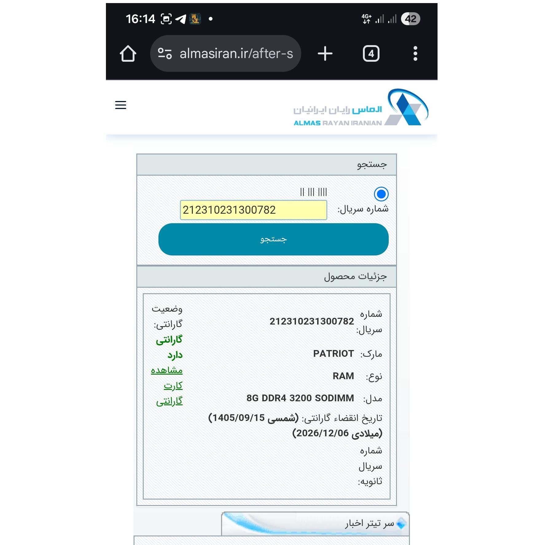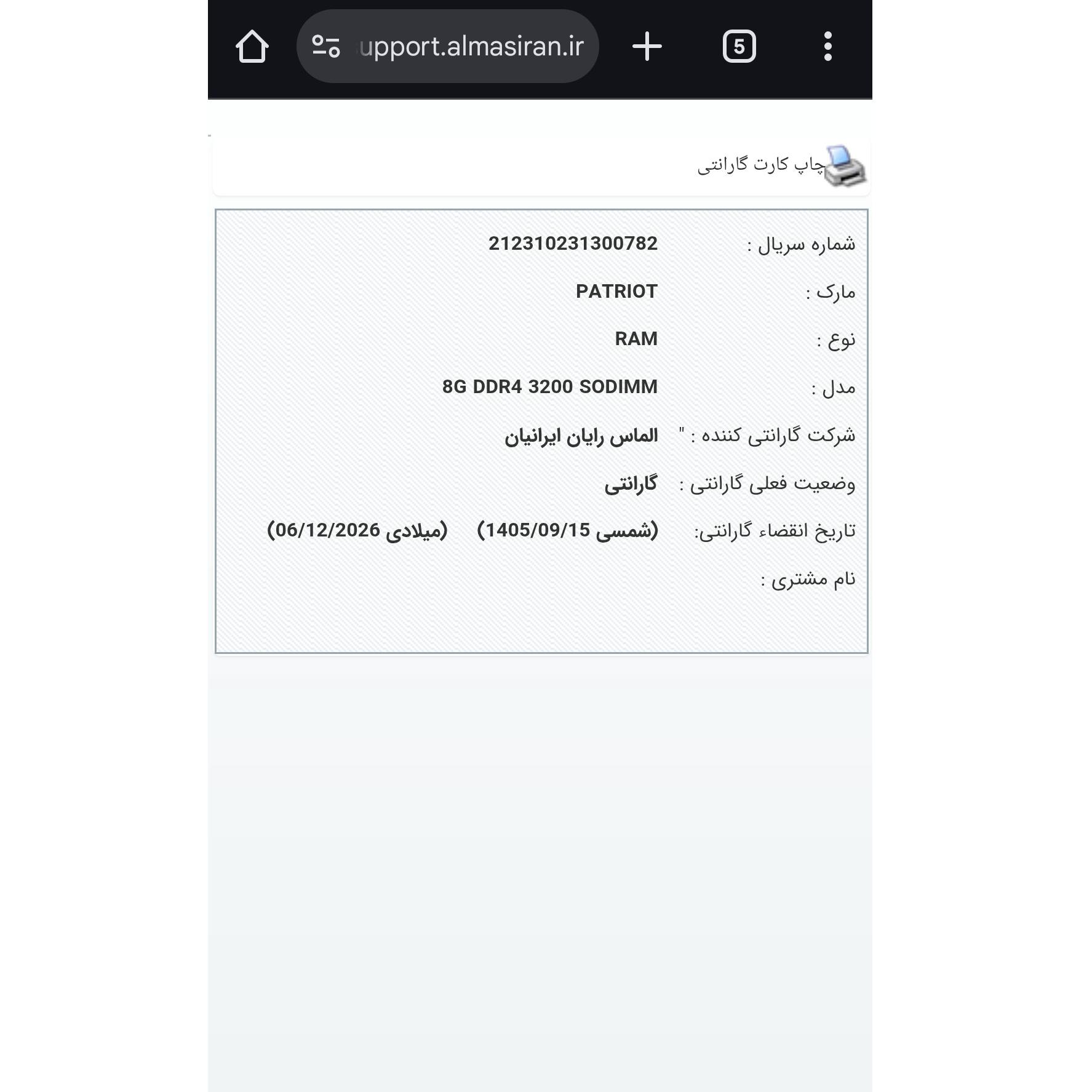 با شرکت الماس رایان تماس گرفتم گفتن با نبود کاور رم گارانتی اوکی هست فقط سریال روی رم مهم است.