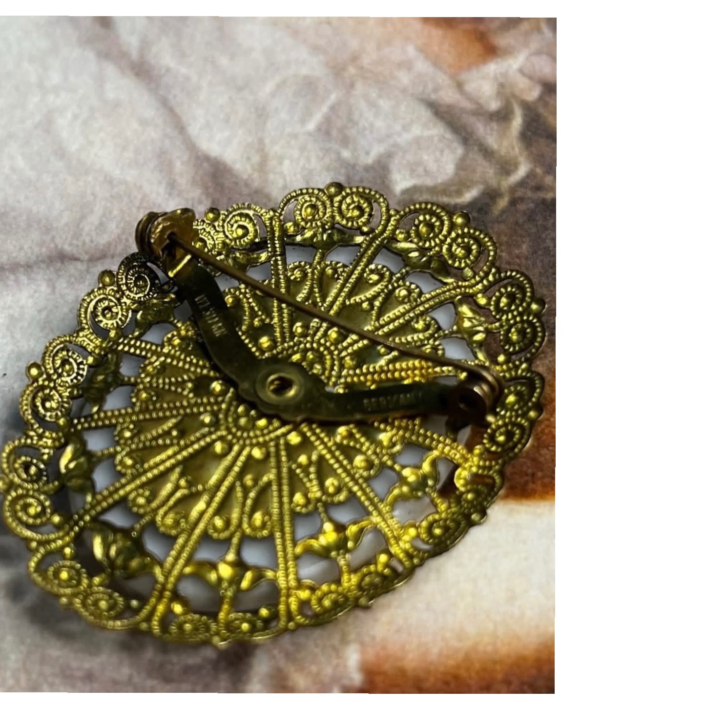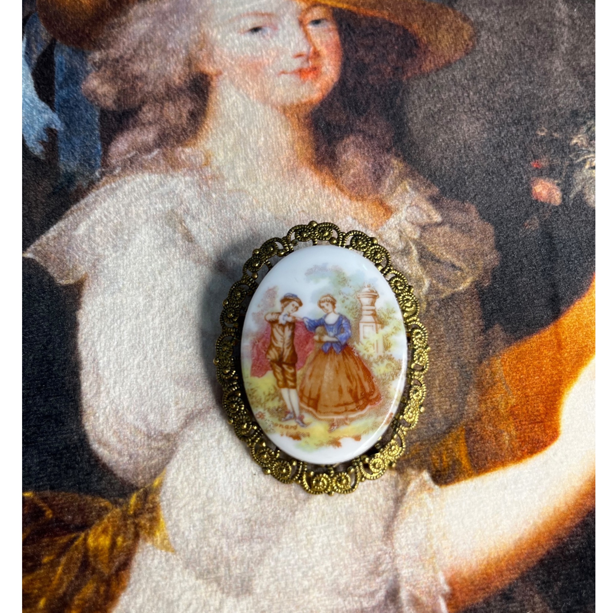 سنجاق سینه پرسلین و برنزی نقاشی دست (برچسب نیست)طرح دنسی ساخت آلمان غربی و مارکدار