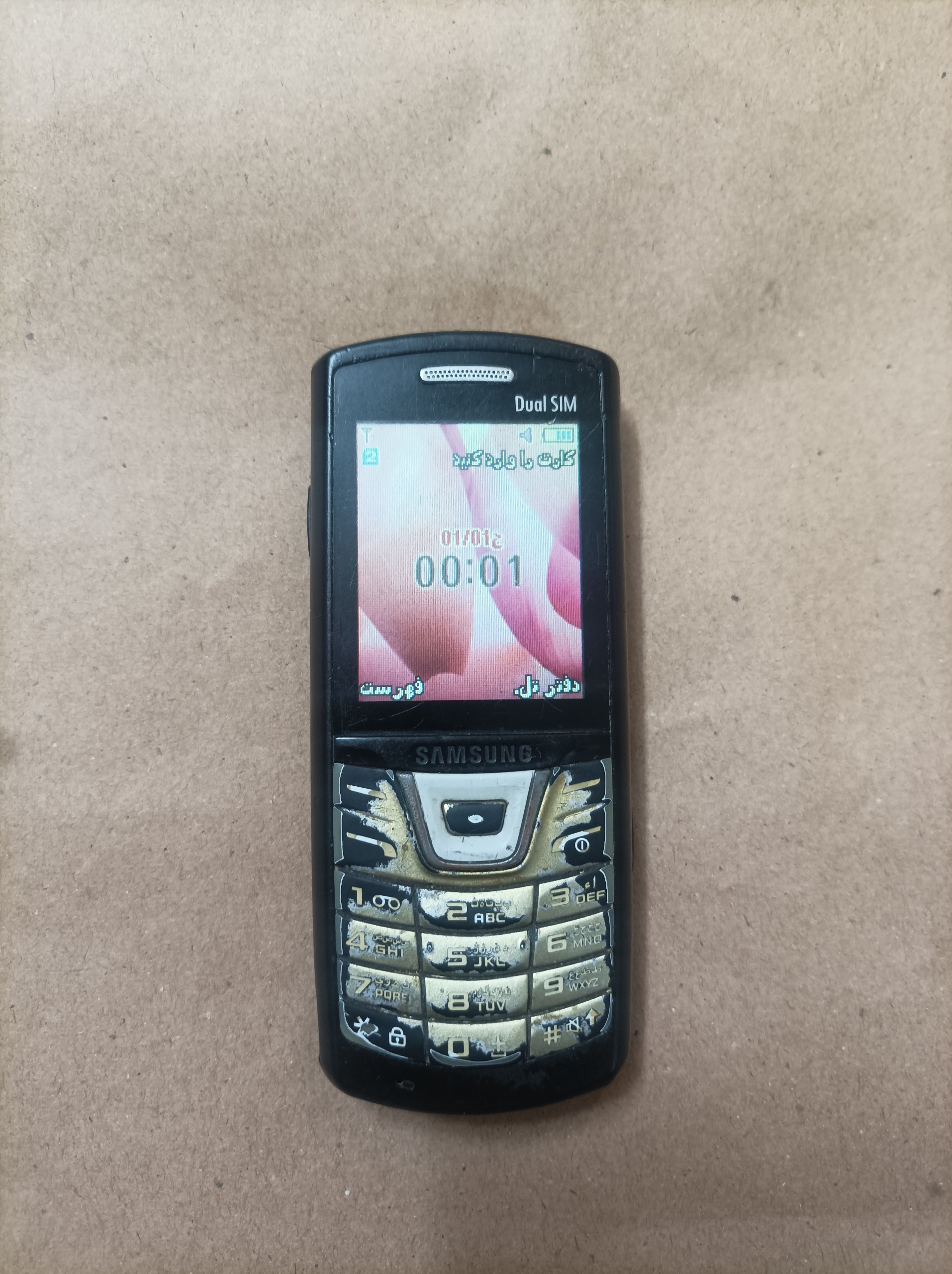 سامسونگ دوسیم کارت.رم خور.بلوتوث.وضعیت رجیستری سفید قابل استفاده بدون مالکیت.باتری و شارژر نو دارد.لوازم دیگری ندارد.دوربین خرابه.ظاهری طبق تصاویر.