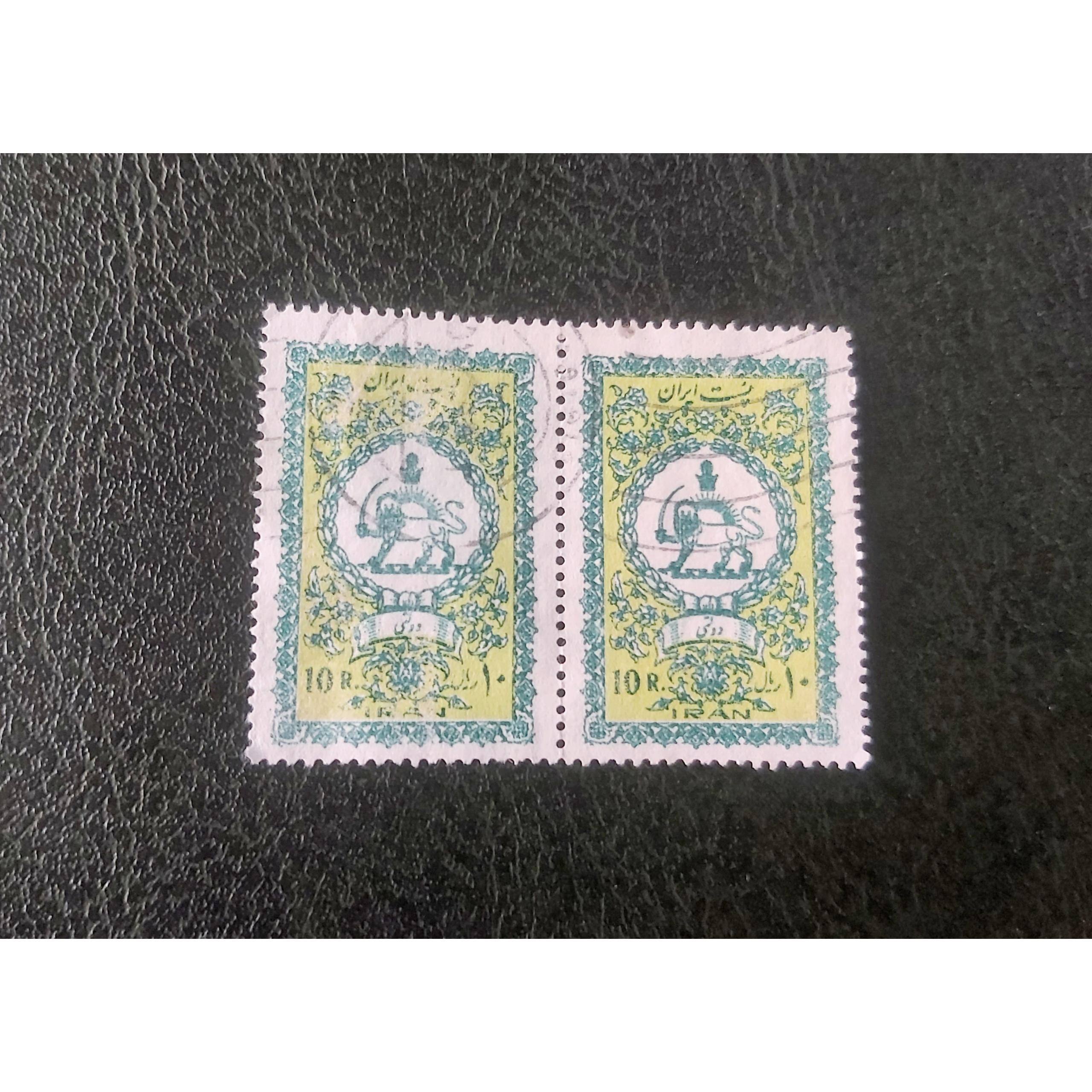 2 عدد تمبر 10 ریال دولتی پهلوی