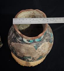 کوزه قدیمی قاجاری قدمت بالا قطعا بالای صدسال بدنه نقاشی بعضی قسمتا طبق تصویر رفتگی داره بابت پریدگی لبه کار وبدنه معیوب ثبت شده ؛کیفیت وابعاد دقیقا طبق تصاویر_____