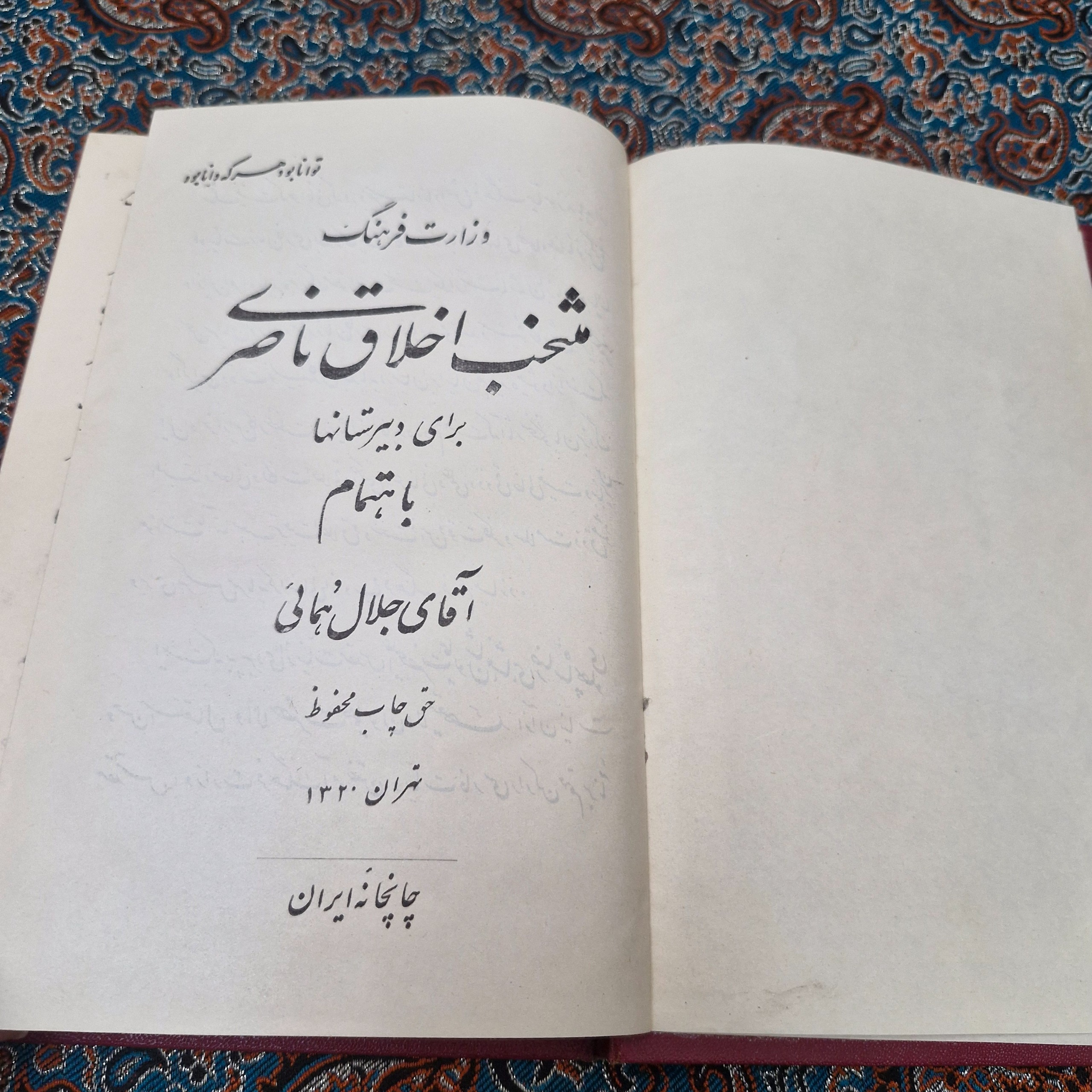 کتاب درسی 1320 منتخب اخلاق ناصری تمیز