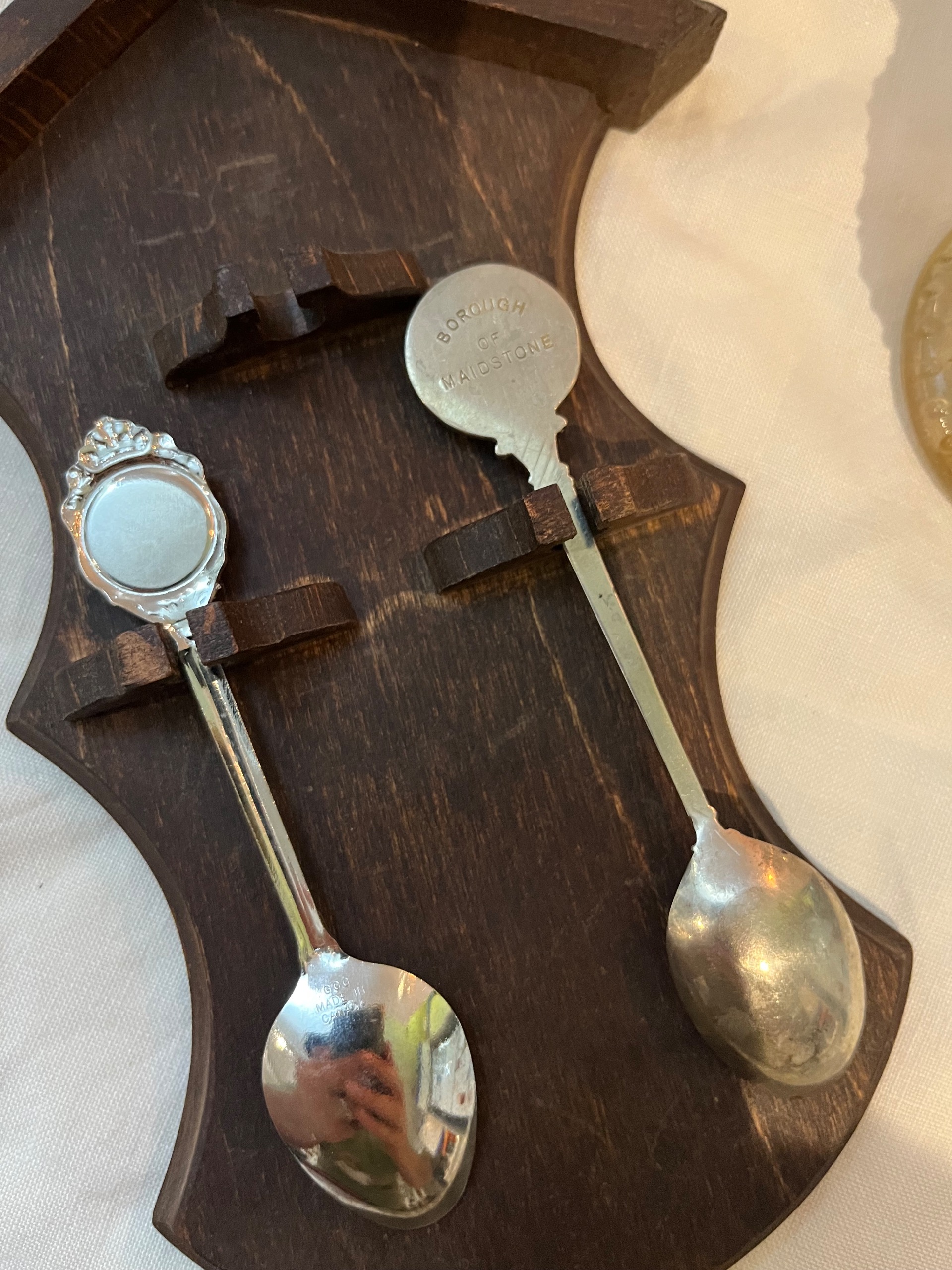 یک قاشق سیلور پلیت و بسیار محکم با طرح سکه ضربی ملکه الیزابت و مارک حک شده در پشت و قاشق دیگر با حک ساخت کانادا و طرح تبلیغاتی کشتی کروز کانادایی.