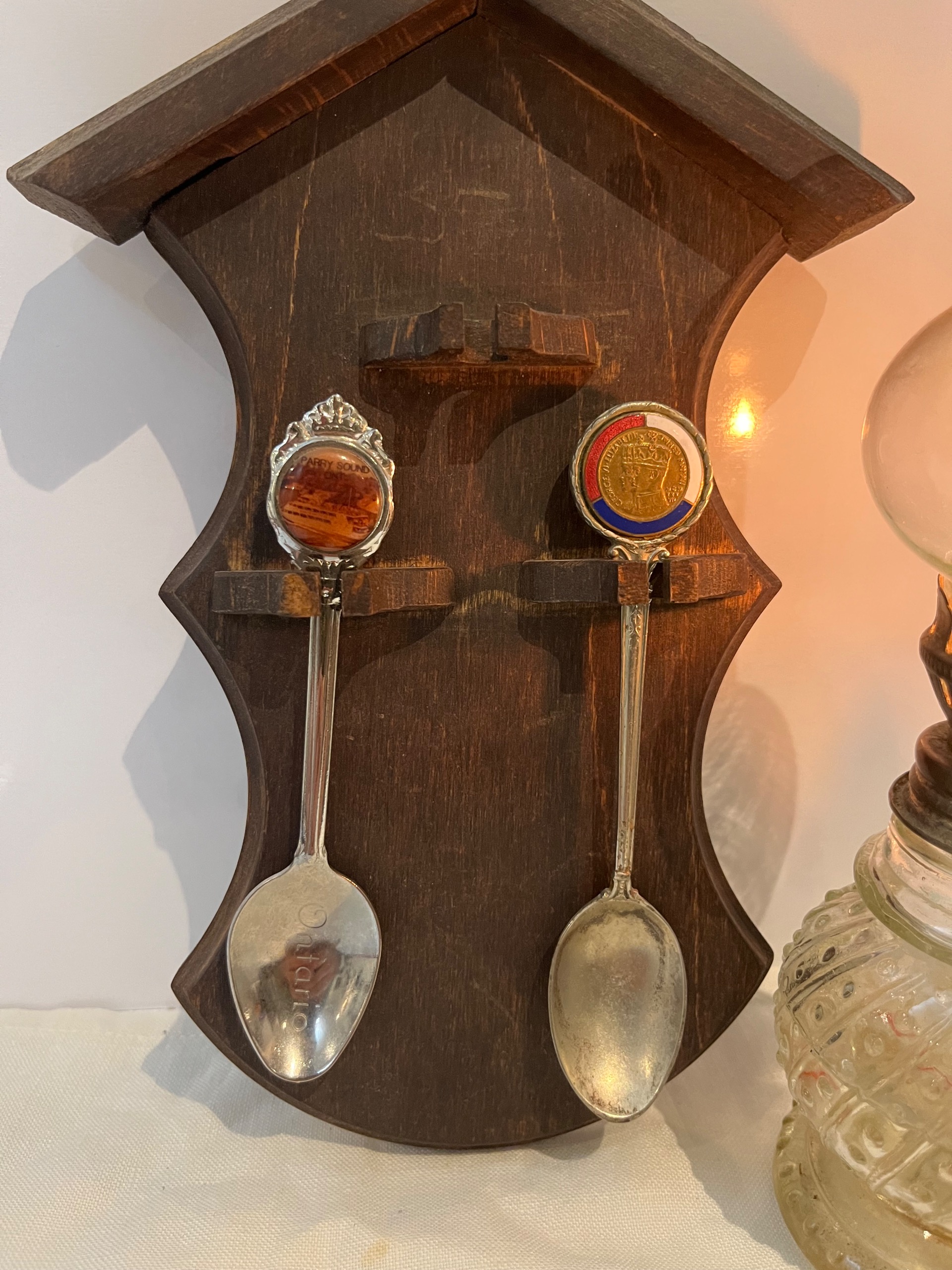 قاشق قدیمی کلکسیونی ساخت کانادا به صورت جفت با طرح های زیبا و خاص.
