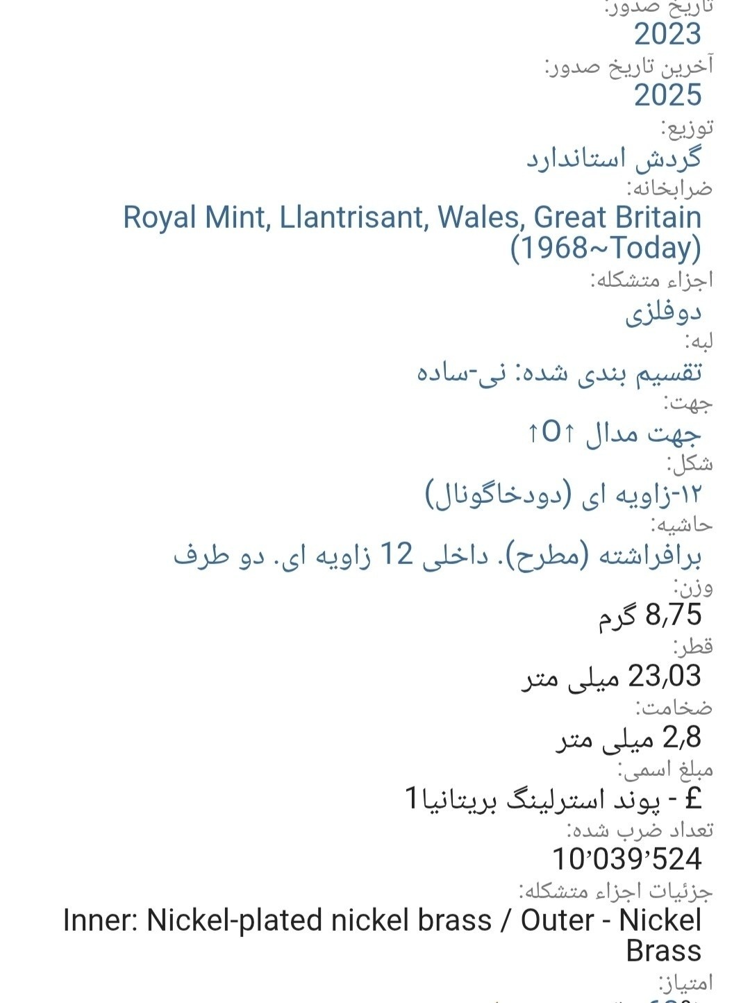 اسکن خود سکه می باشد از بعضی سکه تعداد هست برای انتخاب دوستان به صورت جداگانه در فروشگاه چیده شد تصاویراسکن ارائه شده از کالا ملاک خرید قرار دهید  در تصاویر دوم سوم چهارم توضیحات کامل هست از ابعاد وزن  قطر کالادر خرید خود دقت کنید