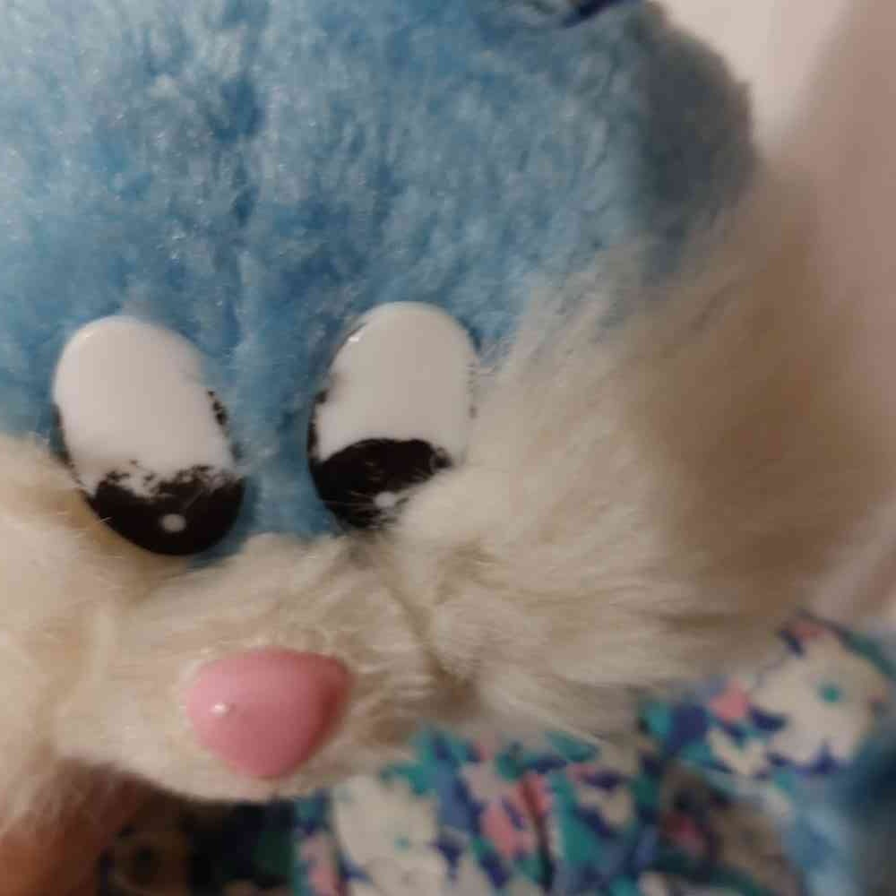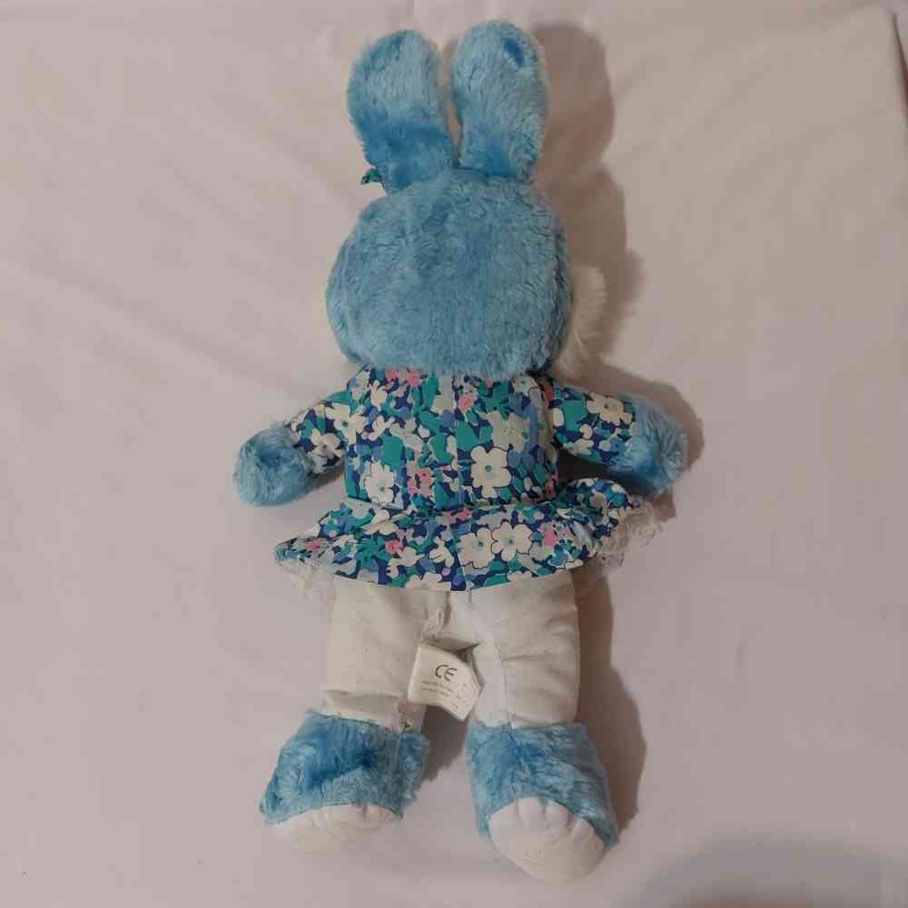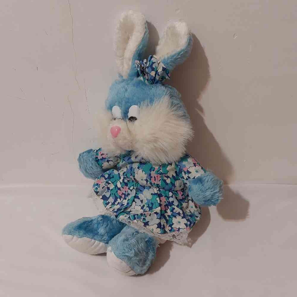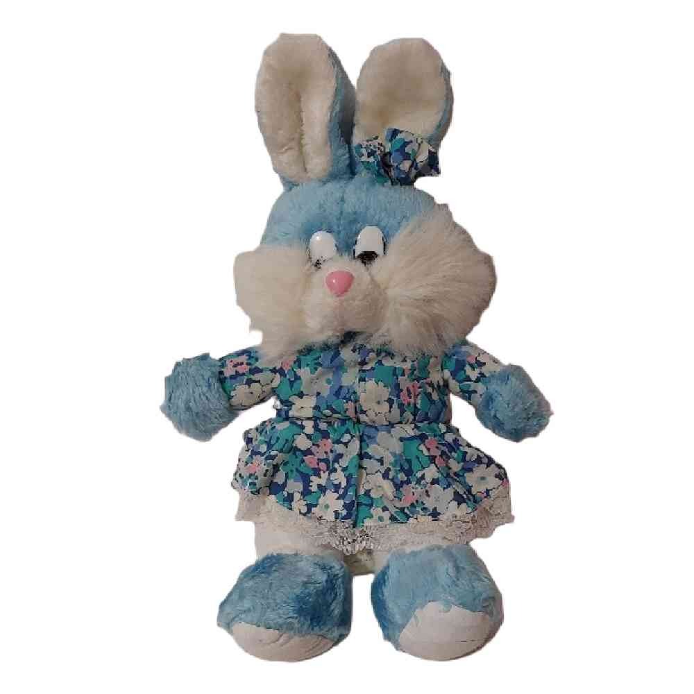 عروسک خرگوش کلکسیونی خزی لباس آبی گل گلی خارجی
