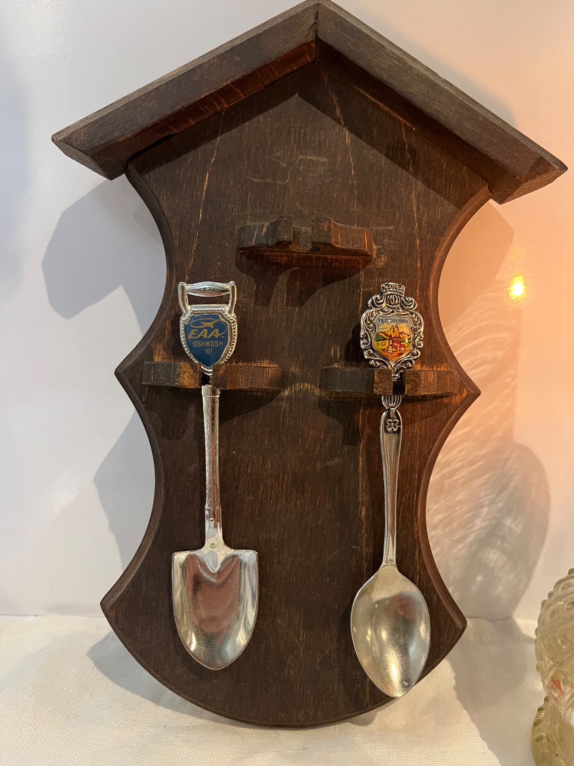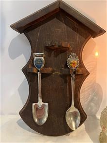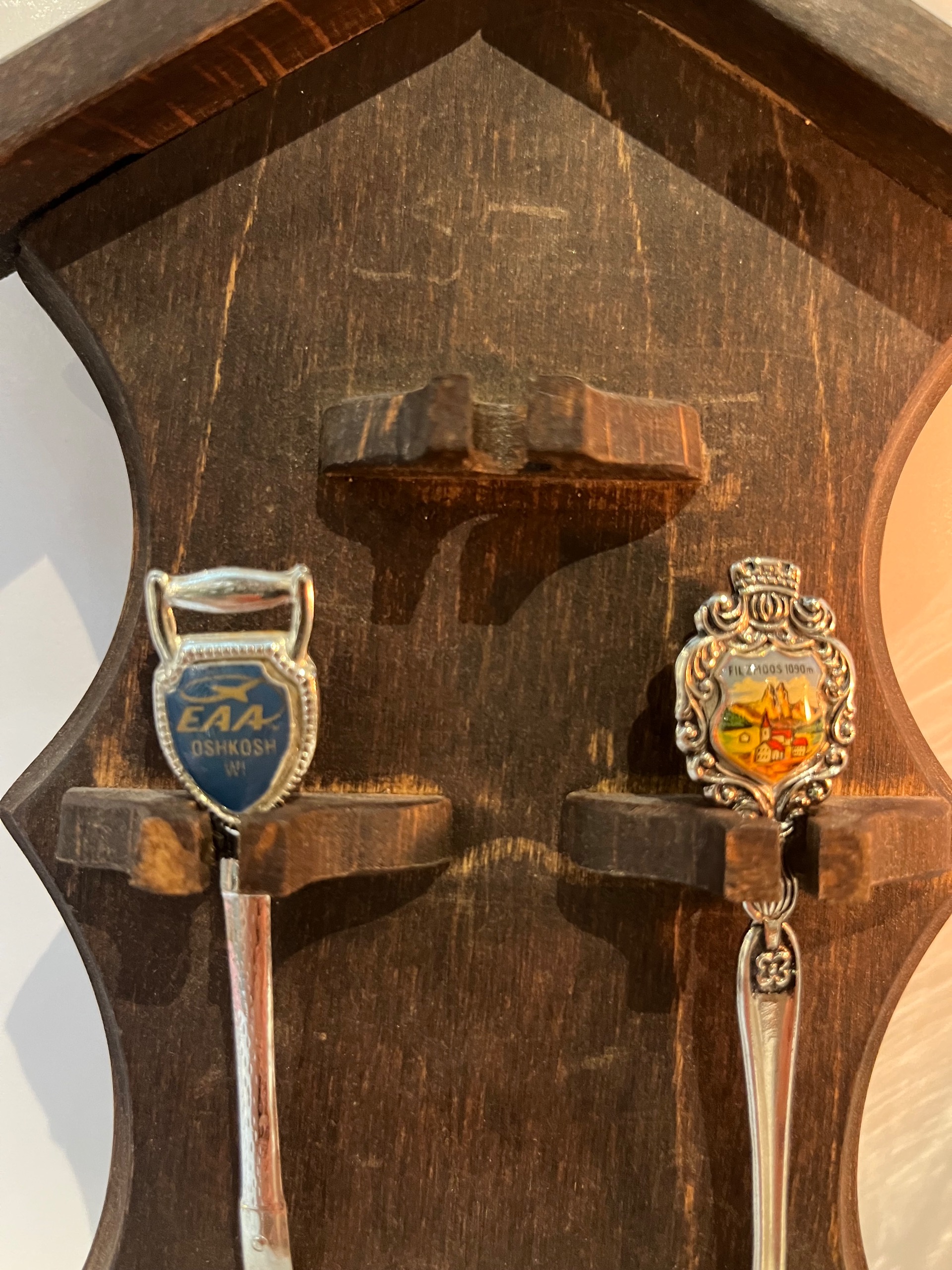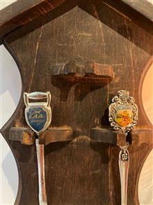 یک قاشق با طرح کوهستان FILZMOOS و دیگری با طرح تبلیغ شرکت هواپیمایی با طرح بیلچه.