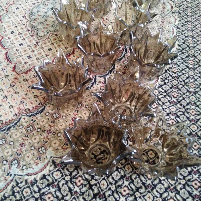 تعداد10عددلاله لوستربرنجی سلطنتی مدل شامپاینی بسیارزیبا وچشم نواز وزیباوبینظیروچشمگیر ضخامت عالی درجه یک با30 عددگوشواره کریستالی شامپاینی