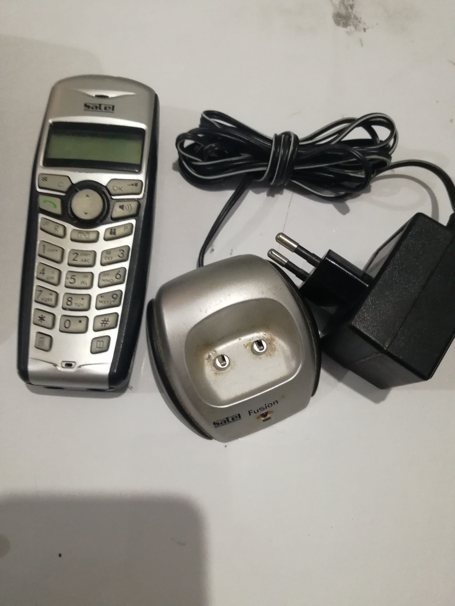 تلفن بی سیم صاتل (در لیست نبود) همراه با گوشی تلفن رومیزی (ثابت) از لحاظ ظاهری در حد نو. ولی از روی میز به پایین افتاده است ال سی دی رو گوشی ثابت شکسته است. نیاز به تعمیر جزئی دارد. بدون باتری قلمی (قابل شارژ) فرستاده می شود. بدلیل نداشتن خط تلفن تست نکردم. معیوب زدم تا حرف و حدیث نباشد. خط و خش جزئی دارد. شسکستگی ریز روی بدنه دارد