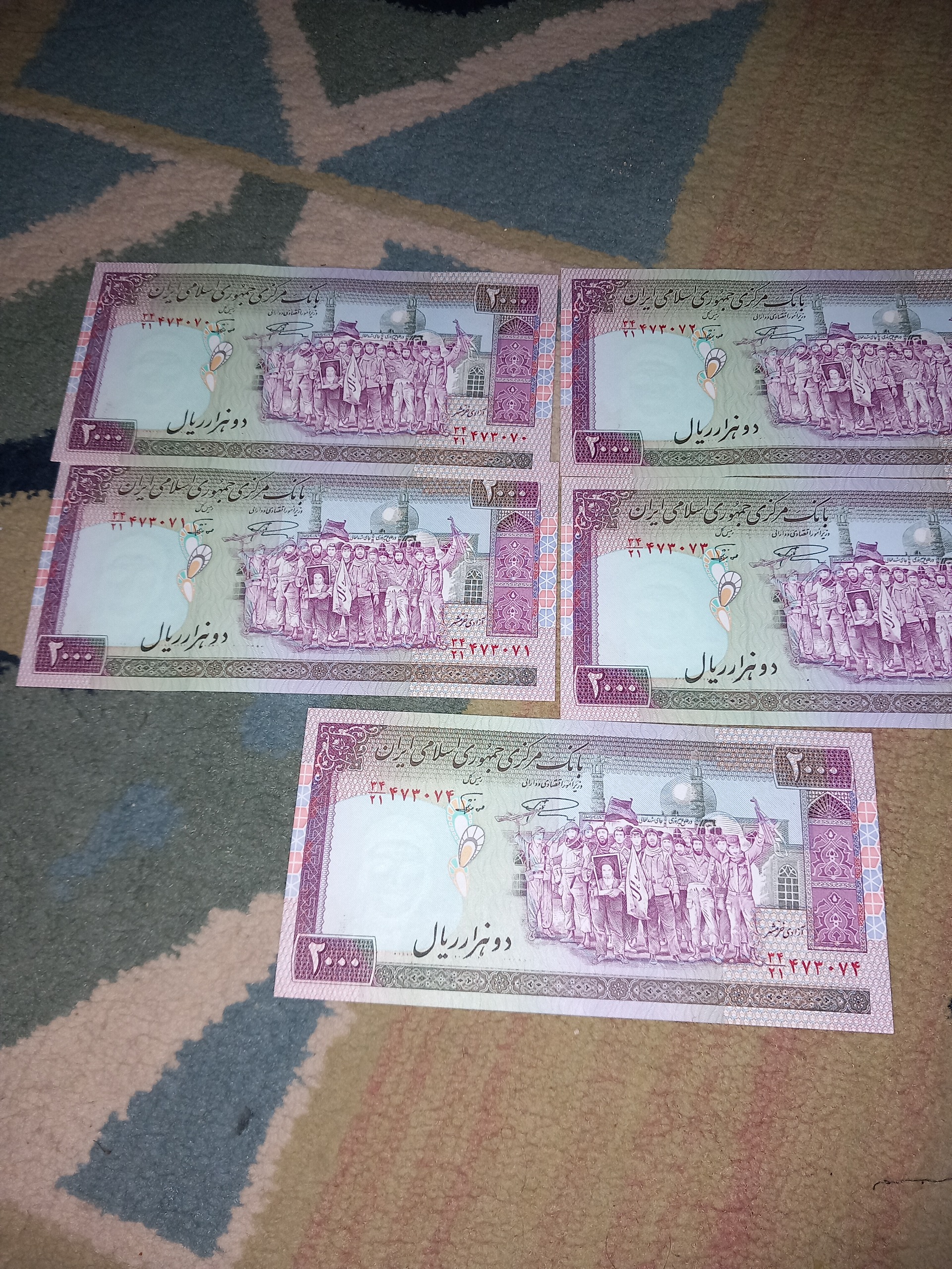 پنج عدد اسکناس 2000ریالی ریالی دوجفت و یک تک با شماره سریال رند وفلیگرام فهمیده با قیمت مناسب به فروش میرسد مخصوص کلکسیون های عزیز