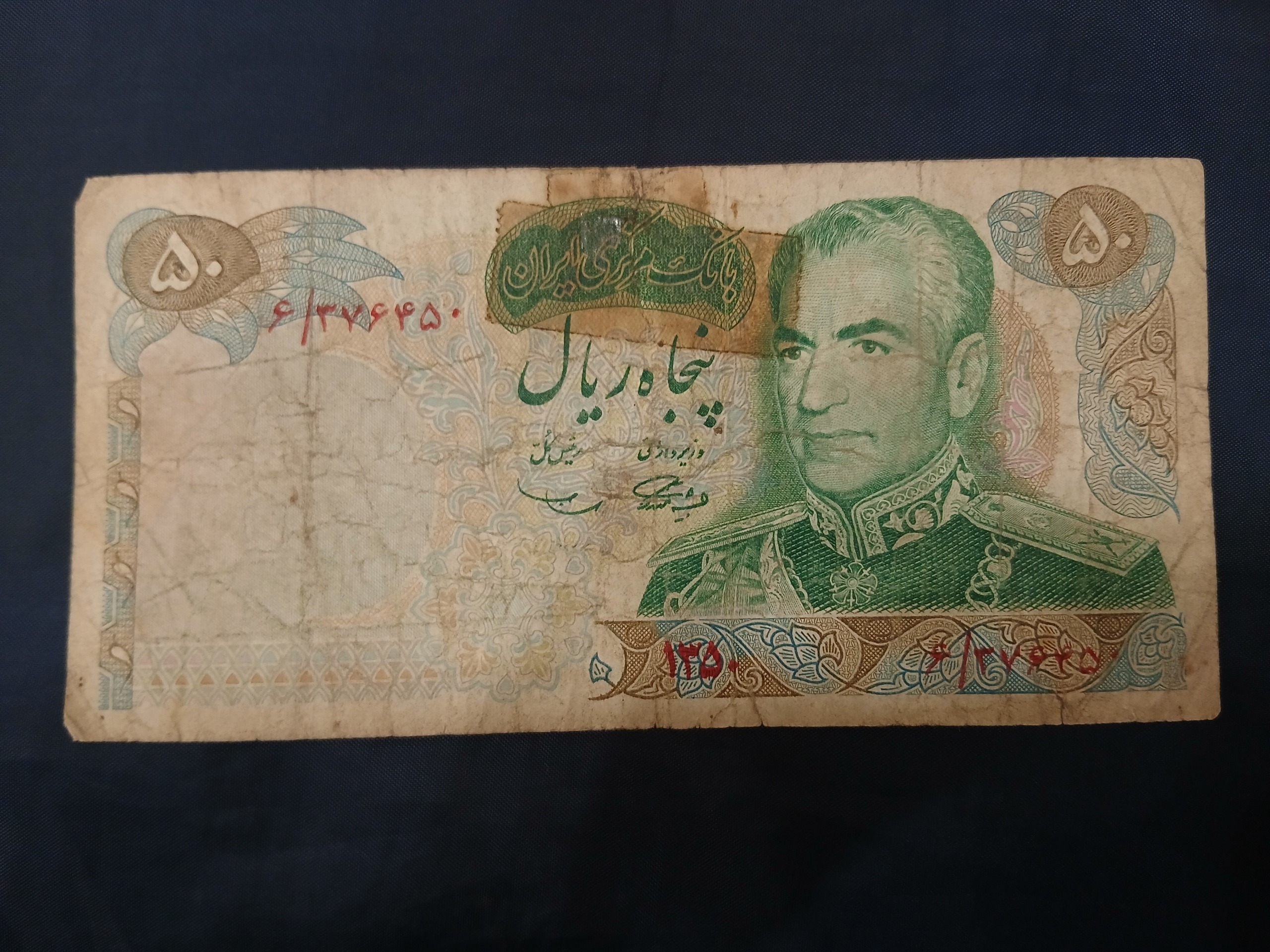 اسکناس 50 ریال بانک مرکزی 1350 محمدرضاشاه