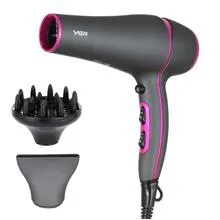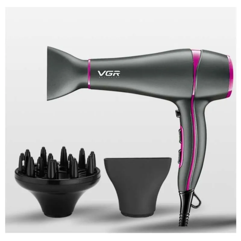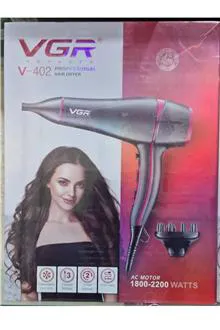 سشوار وی جی آر VGR مدل V-402 یک از بهترین مارک های سشوار حرفه ای سالنی و خانگی موجود در بازار ایران با قیمت خرید مناسب و کارایی و کیفیت فوق العاده می باشد. در واقع سشوار vgr 402 با طراحی فوق العاده زیبا و کارایی بالای آن یکی از بهترین برند ها است که طرفداران زیادی را به خود جلب کرده است. همچنین سشوار وی جی آر 402 دارای توان قدرتمند 2200W است و وجود سیستم فیوز حرارتی در آن موجب می شود که موتور آن بیش از حد گرم نشود. این محصول زیبا با وزنی معادل 850 گرم به راحتی قابل حمل و جابه جایی می باشد. جنس بدنه ی آن نیز از پلاستیک فشرده می باشد که بسیار مستحکم و مقاوم در برابر ضربه و گرما است.