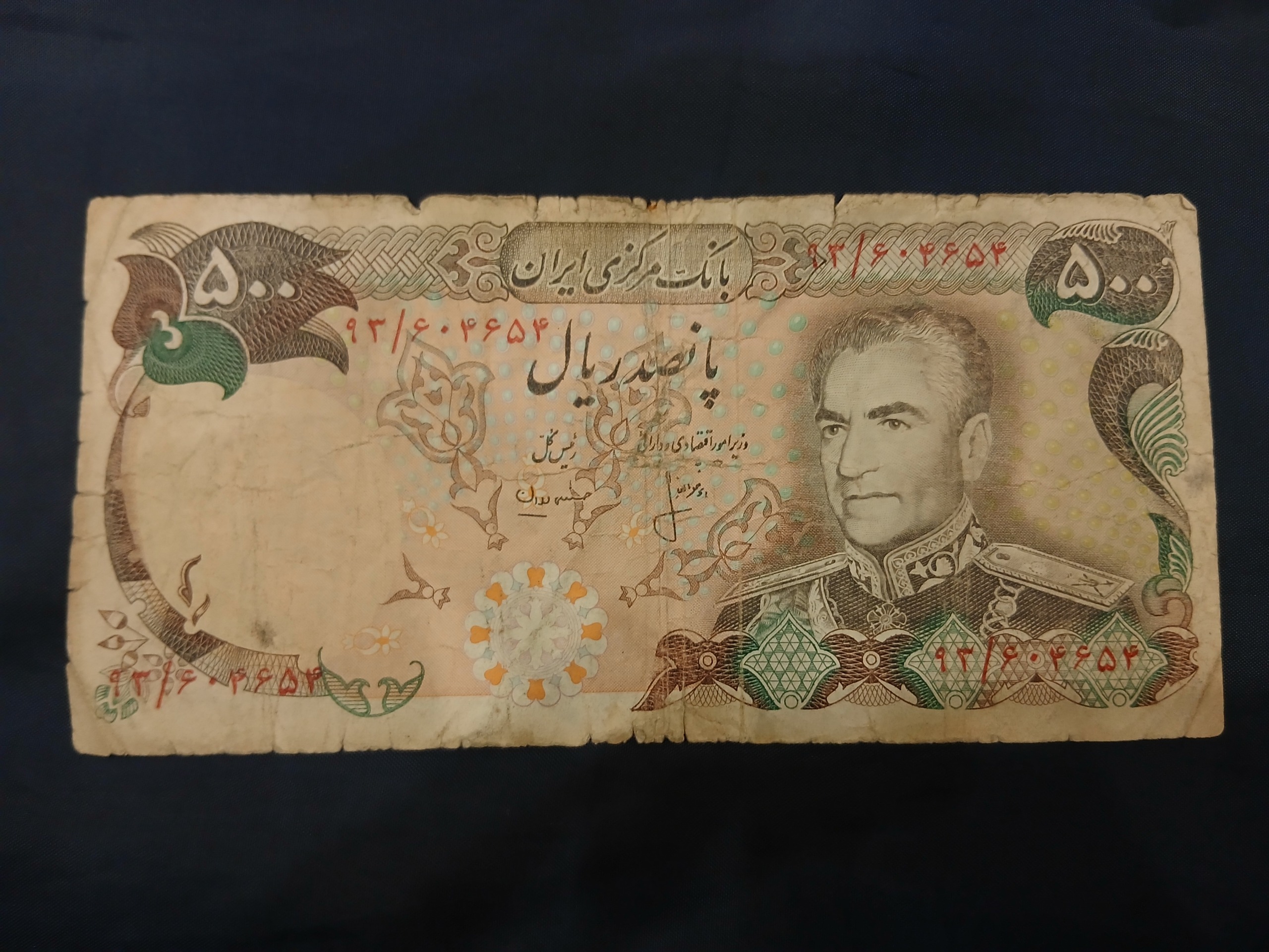 اسکناس 500 ریال بانک مرکزی سری آخر محمدرضاشاه
