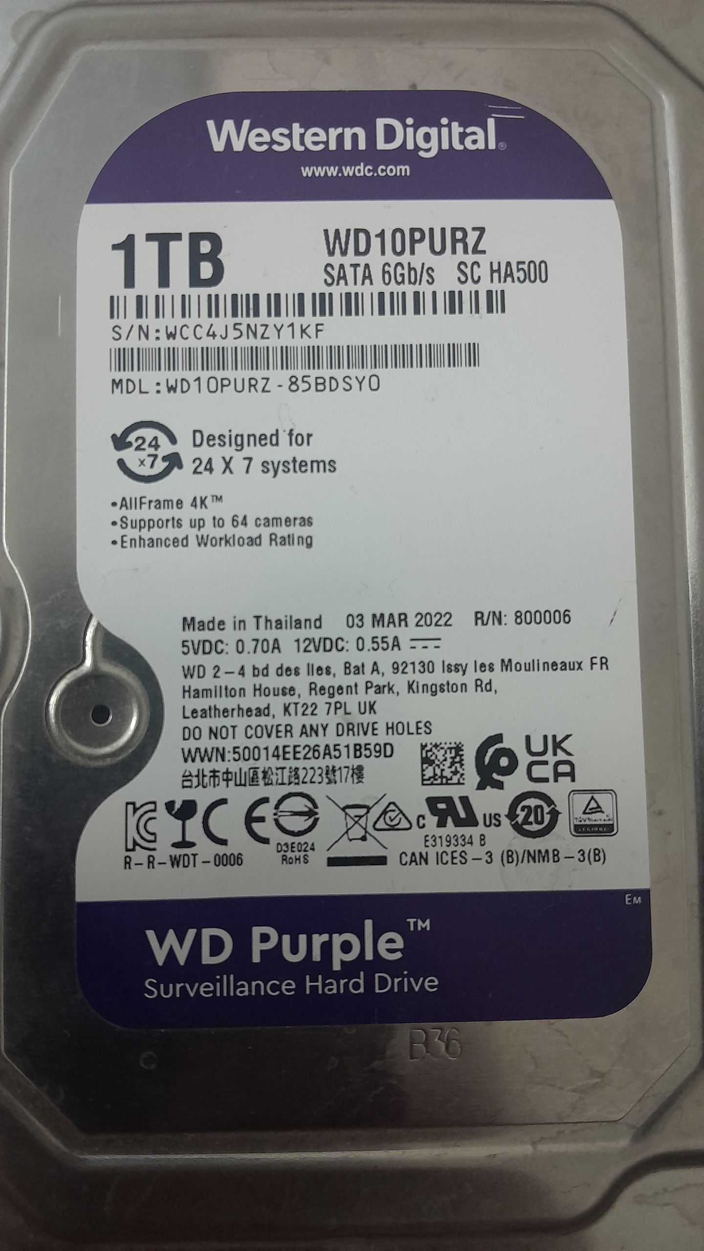 هارد یک ترا بنفش دوربین در حد نو