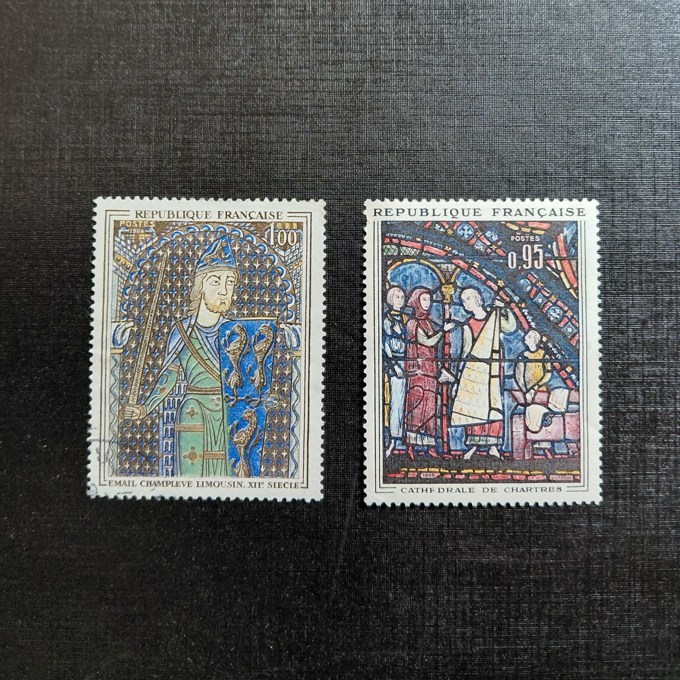 دو عدد تمبر زیبای از کشور فرانسه، قدیمی مربوط به قبل از انقلاب، مطابق تصویر