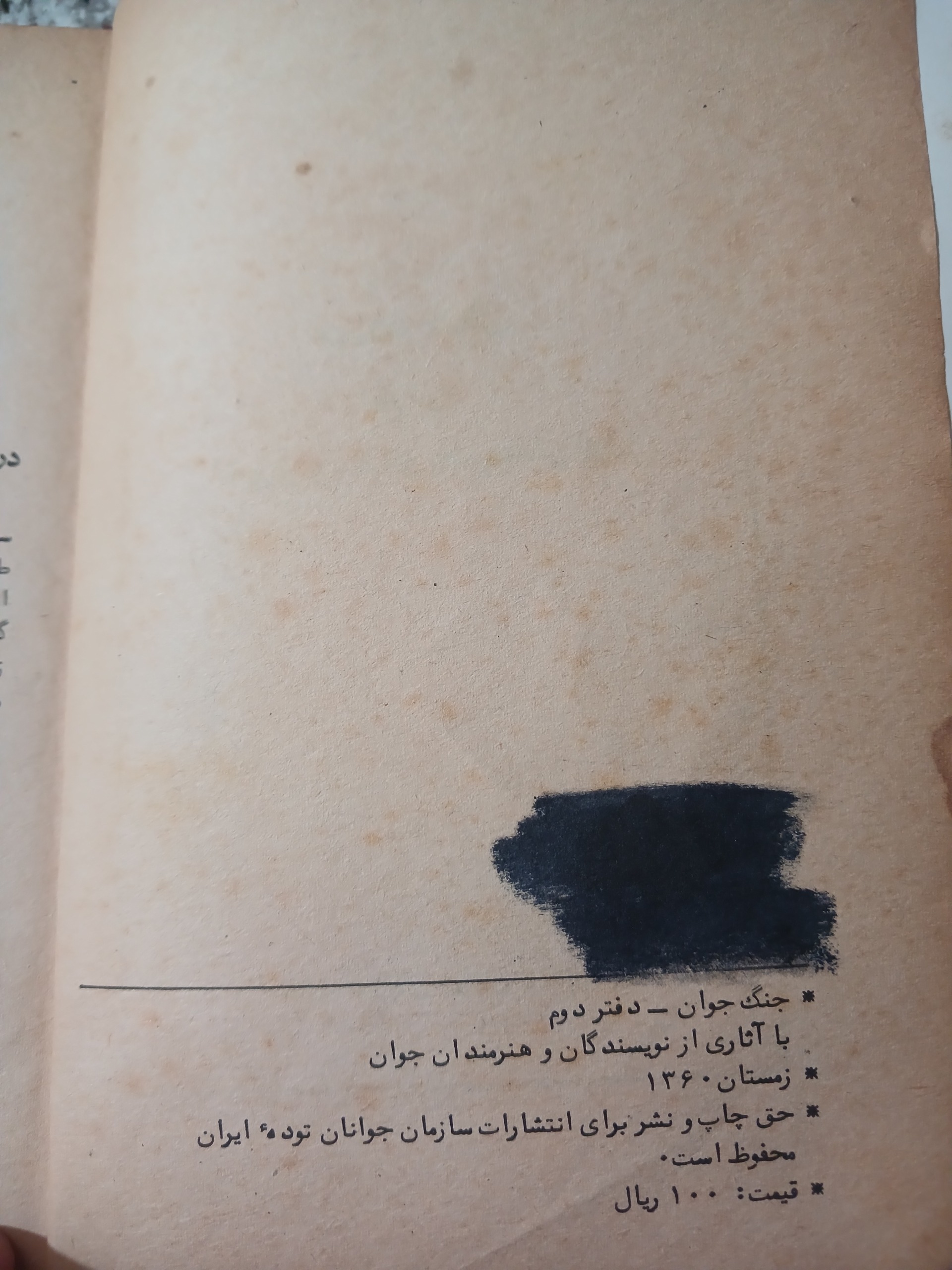 نیمی از صفحات کتاب لکه ی قهوه ای رنگی ایجاد شده و قلم خوردگی دارد که تصویر نمونه گذاشته ام.