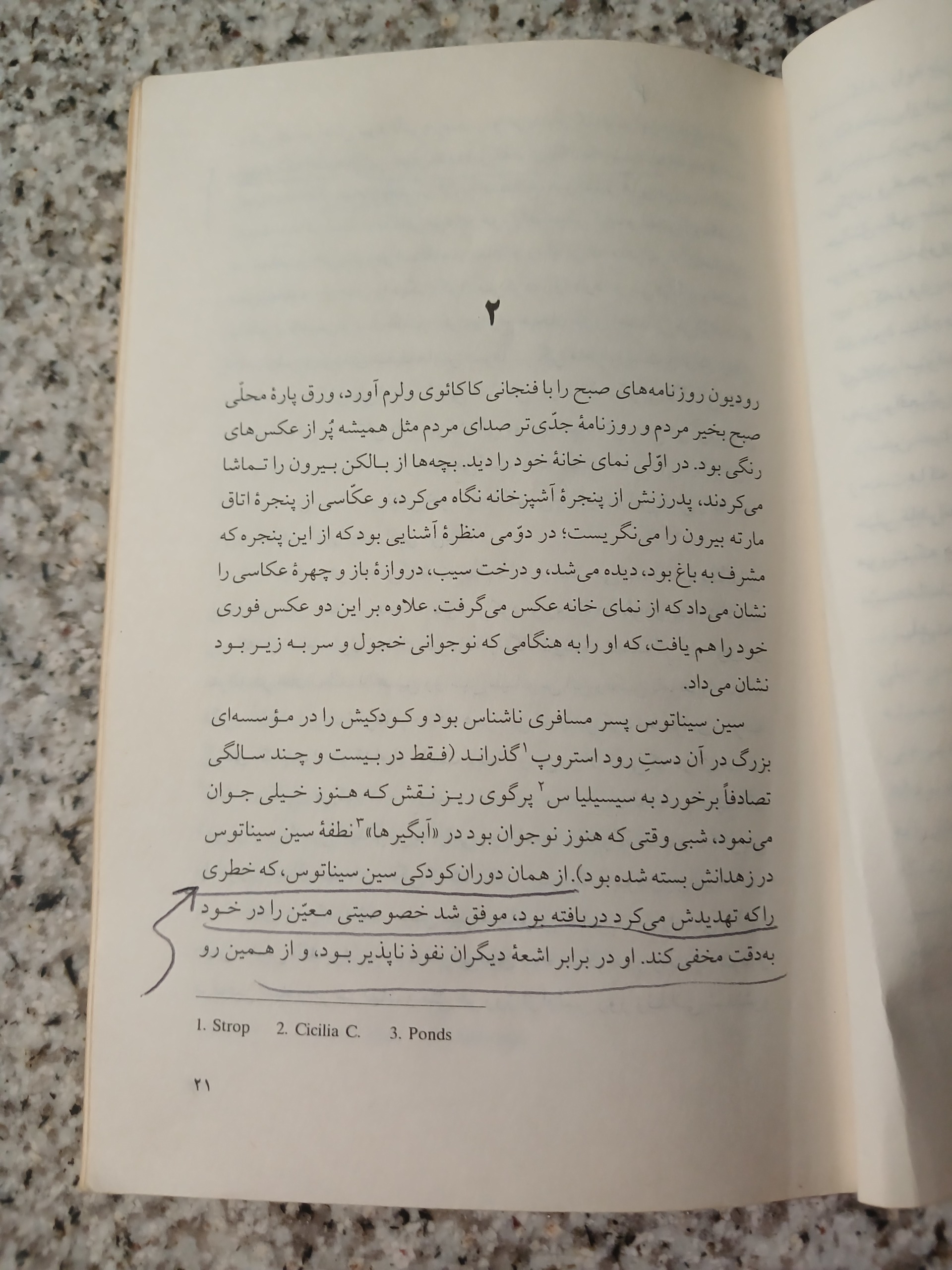 7 صفحه از کتاب لکه ی سفید رنگی ایجاد شده یا با خودکارنوشته یا زیر جملات خط کشیده شده است. که تصویر نمونه گذاشته ام.