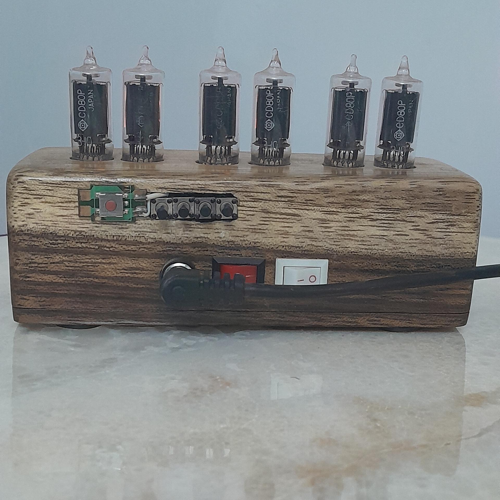 درود  لامپ نیکسی که اعداد را نشان میدهد از نوع نیکسی بوده و قدیم اولین اختراع اینگونه نوشته و اعداد نویسی را شامل میشده است این لامپها امروزه  تا حدودی کمیاب و لامپهای سون سکیمت جای انها را گرفته است اعداد این لامپها بصورت کامل از صفر تا نه را دارد که با برقراری. جریان روشن میشود ولتاژ این لامپها برای روشن شدن 180ولت لتزم است رنگ دقیق این لامپها  به رنگ لامپ فازمتر است این ساعت دارای باتری بک اپ بوده و دارای تاریخ و دماسنج فعال و دقت فوقالعاده بالا و مصرف خیلی کم که گرم نمیشود دور از واقعیت نیست که از این لامپها برای اولین یار در زیر دریائیها استفاده شد