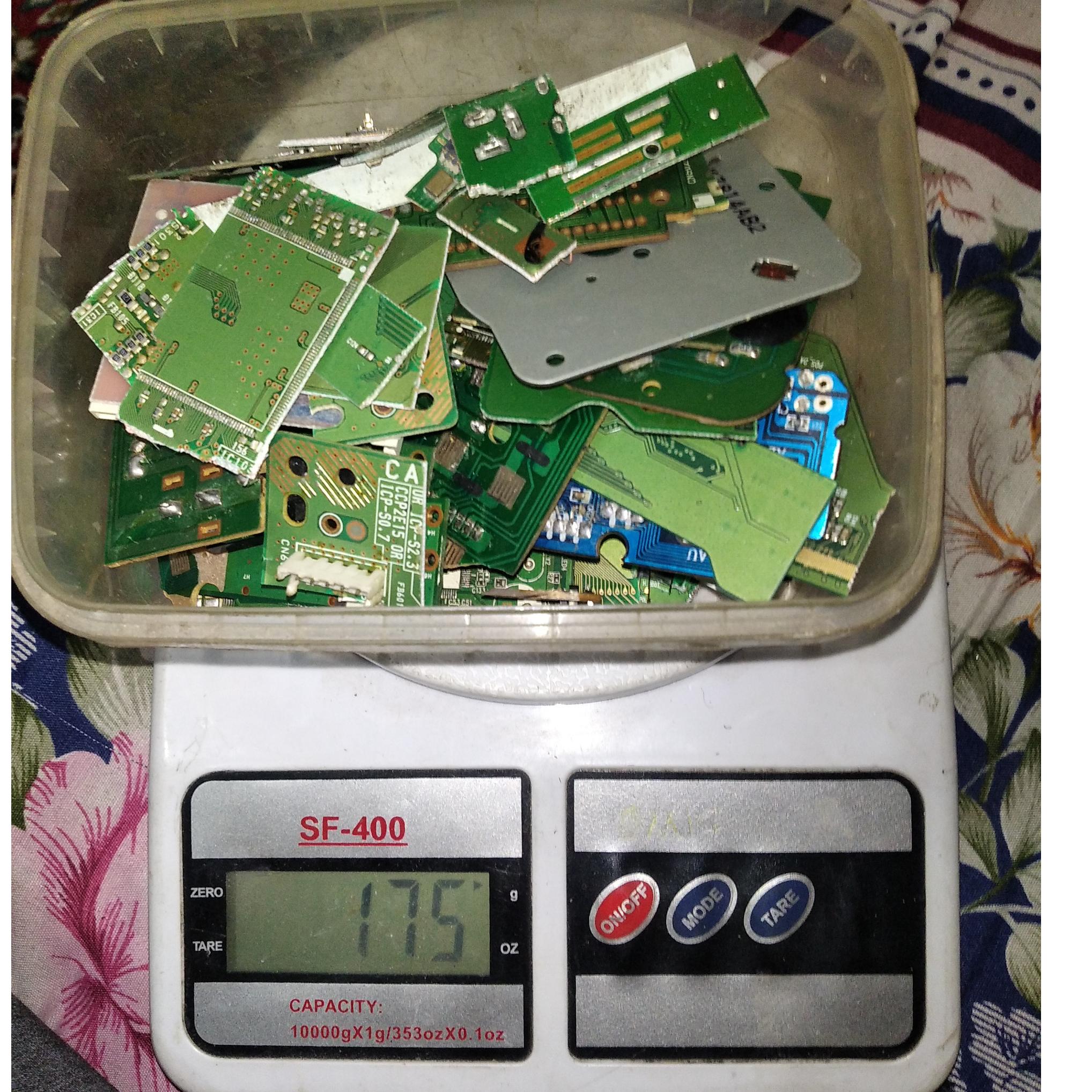 175 گرم بورد تکه تکه شده الکترونیکی همگی دارای زردبار(بهترین گزینه برای استخراج فلز طلا).