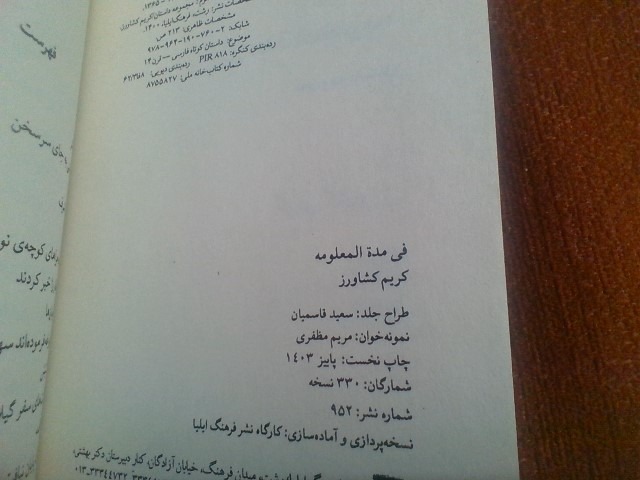کتاب فی مدت المعلومع تالیف کریم کشاورز چاپ1403