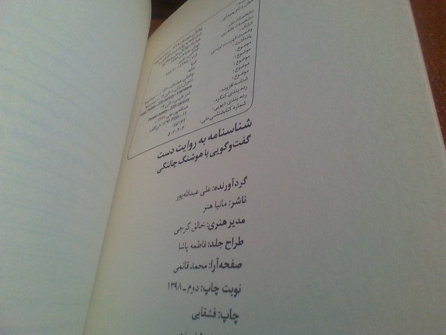 کتاب شناسنامه به روایت دست گفتگوباهوشنگ چالنگی