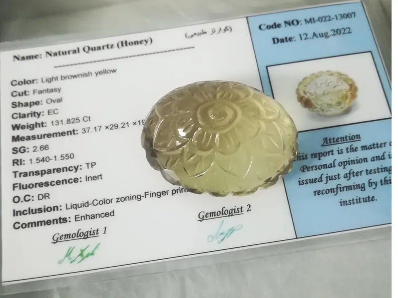 کوارتز طلایی کمیاب بینظیر 131 قیراطی شناسنامه دار