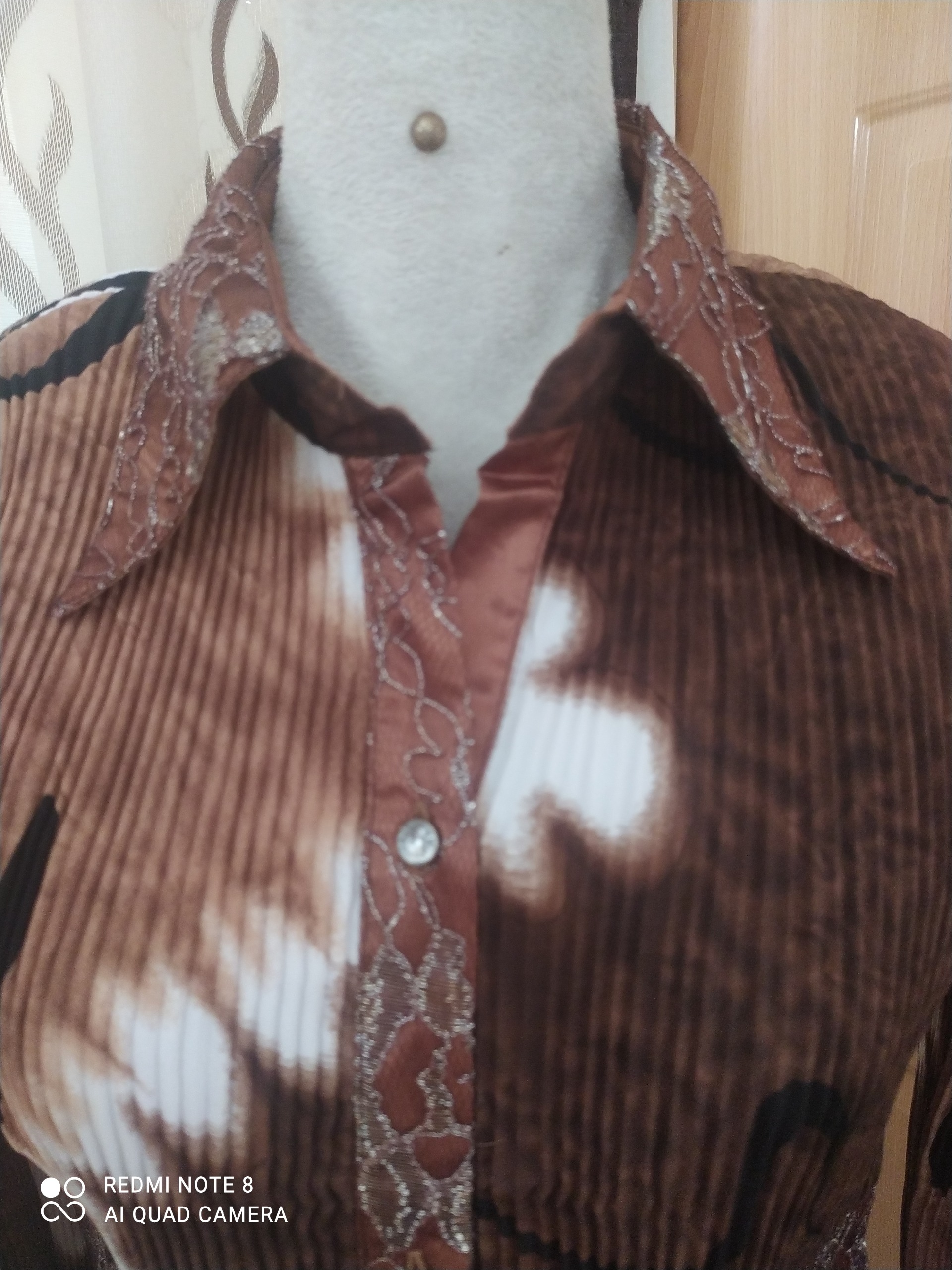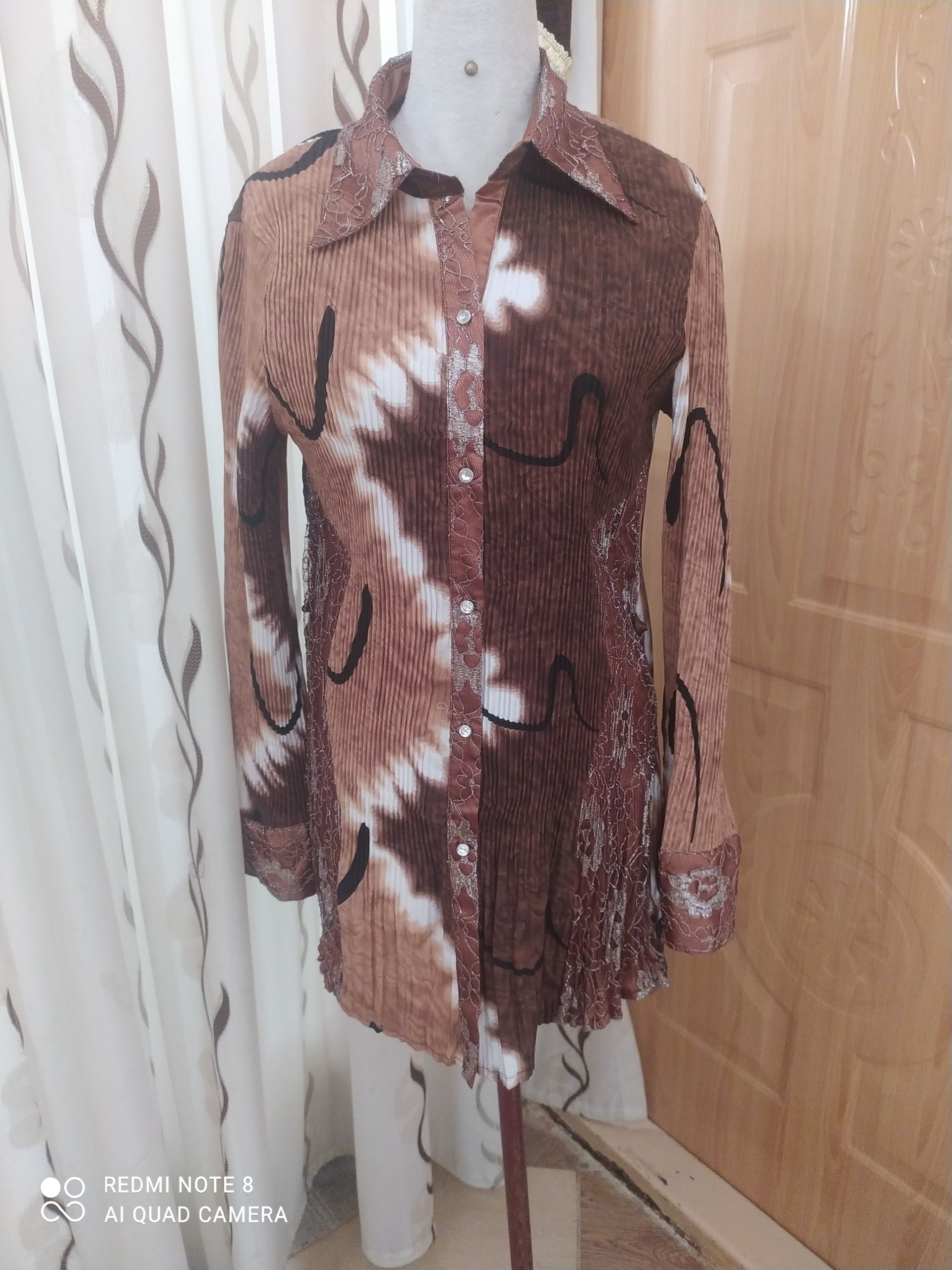 لباس حالت پلیسه ای هست کشسانی داره ،برای افراد لاغر ومتوسط مناسبه