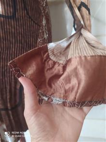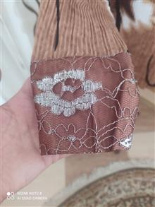 یقه ، مچ ،پهلو ، پارچه تور گیپوری کارشده ،کمربند هم داره که بتونید اون رو جذب کمر کنید