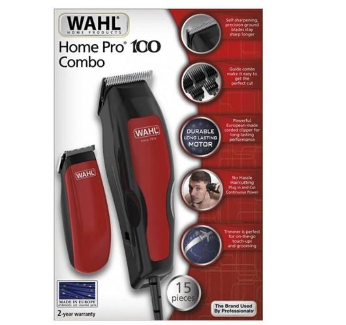 وال پرو 100 کمبو یک ست ماشین اصلاح مو است که شامل یک ماشین اصلاح با سیم و یک تریمر شارژی می باشد. این ست برای استفاده شخصی در منزل مناسب است و دارای اقلام همراه مانند شانه های مختلف، روغن، برس تمیزکننده و محافظ تیغه است.